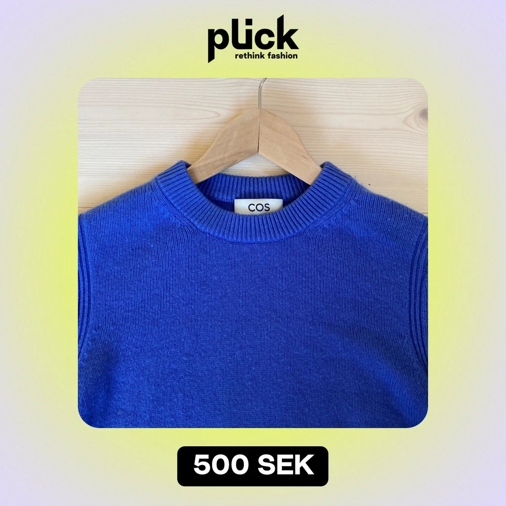 Säljer en snygg blå stickad tröjan i karsmir från COS. Den har en klassisk rund hals och långa ärmar, perfekt för kyligare dagar. Tröjan är i mycket bra skick och passar både till vardags och lite finare tillfällen. Supermjuk och bekväm!