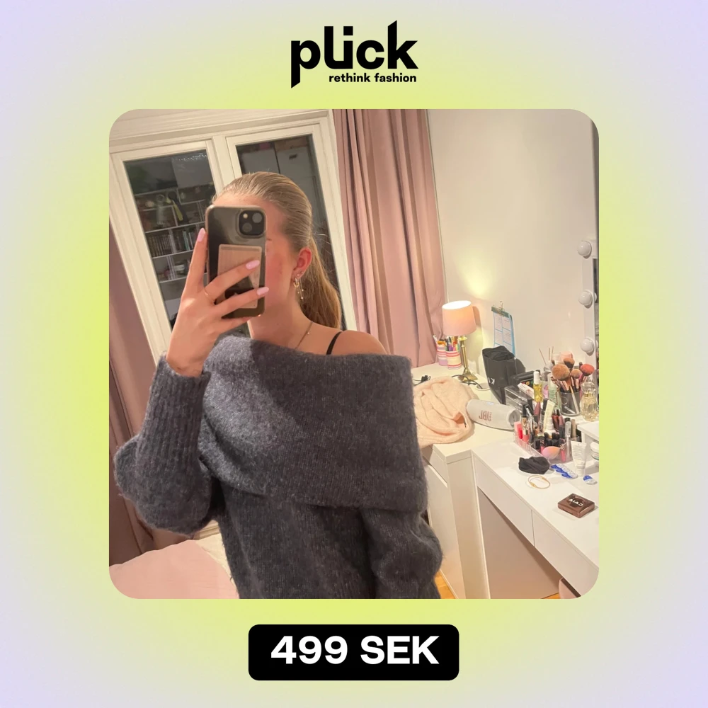 Säljer en supermysig grå stickad tröja med offshoulder-design. Perfekt för kyliga dagar när du vill vara både varm och stilren. Tröjan har långa ärmar och en lös passform som gör den extra bekväm. Passar perfekt till jeans eller leggings för en avslappnad look. Tröjan är inte använd men prislappen är borttagen, köpt för mindre än ett år sedan och är storlek M.