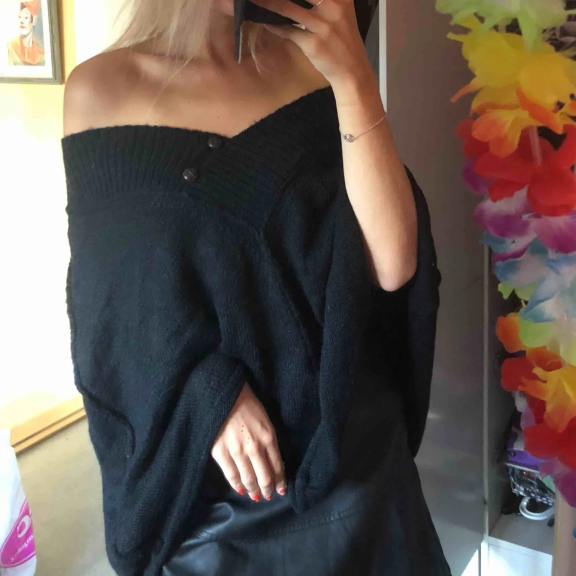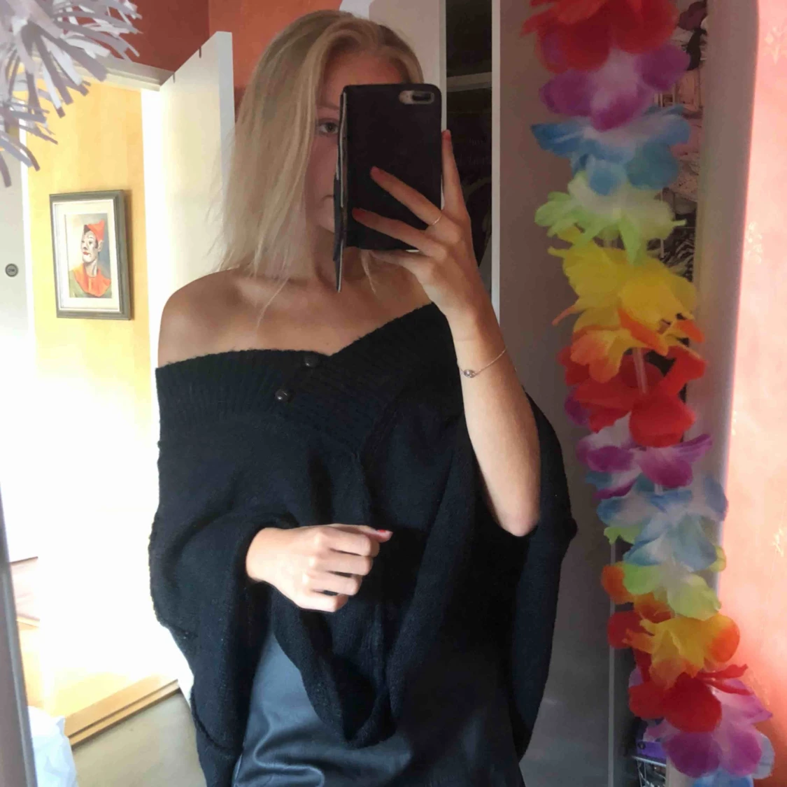Såå otroligt fin & mysig stickad poncho med fina bruna knappar framtill, perfekt att ha över skinnjackan eller som jag har på bilden (som en offshoulder tröja), och några fina smycken🌹 passar XS-L beroende på hur man vill den ska sitta!