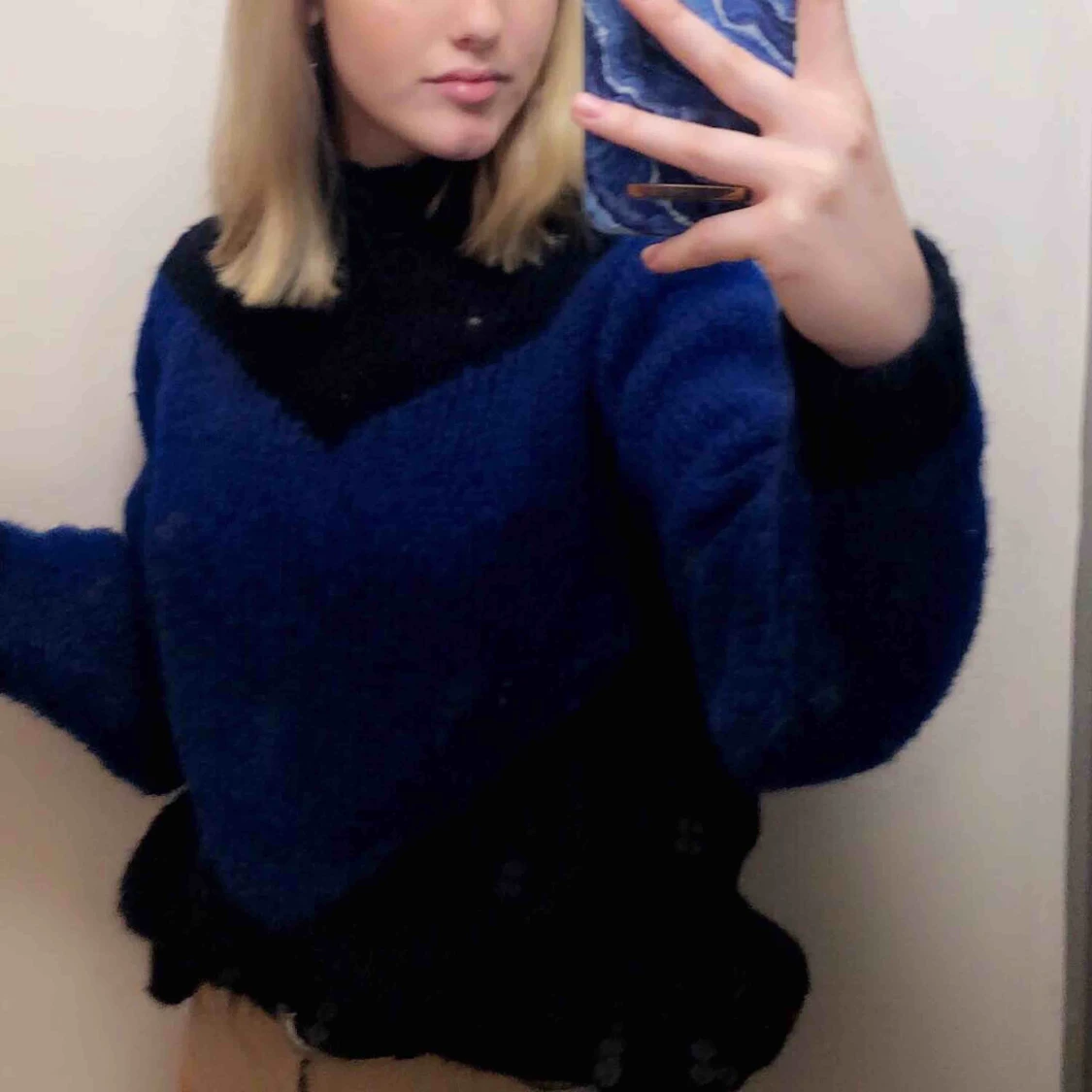 Jätte fin stickad tröja i fin djup blå färg