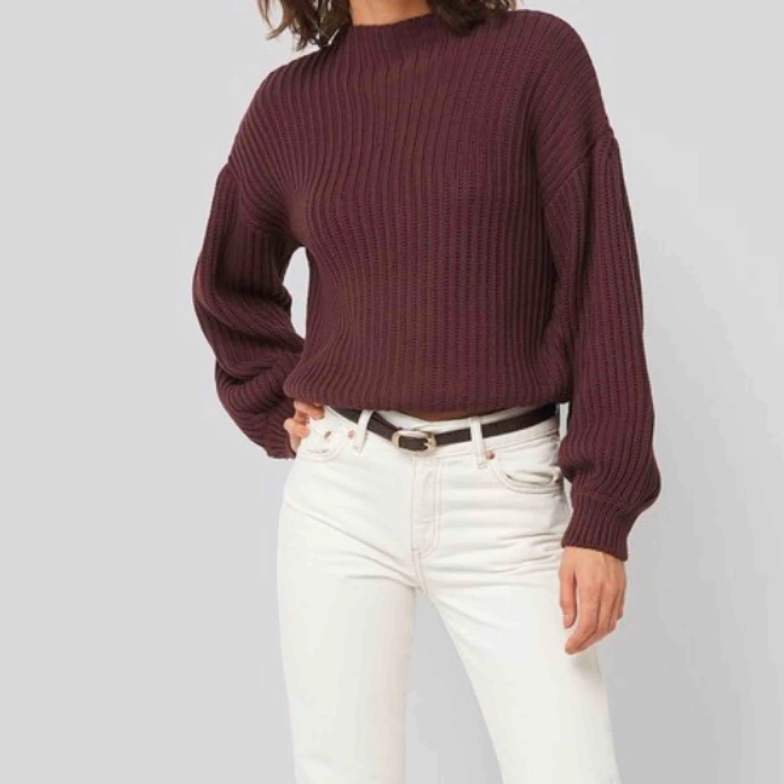 Jätte skön stickad tröja med ballong armar. Använd 2 gånger. Köpare står för frakt.