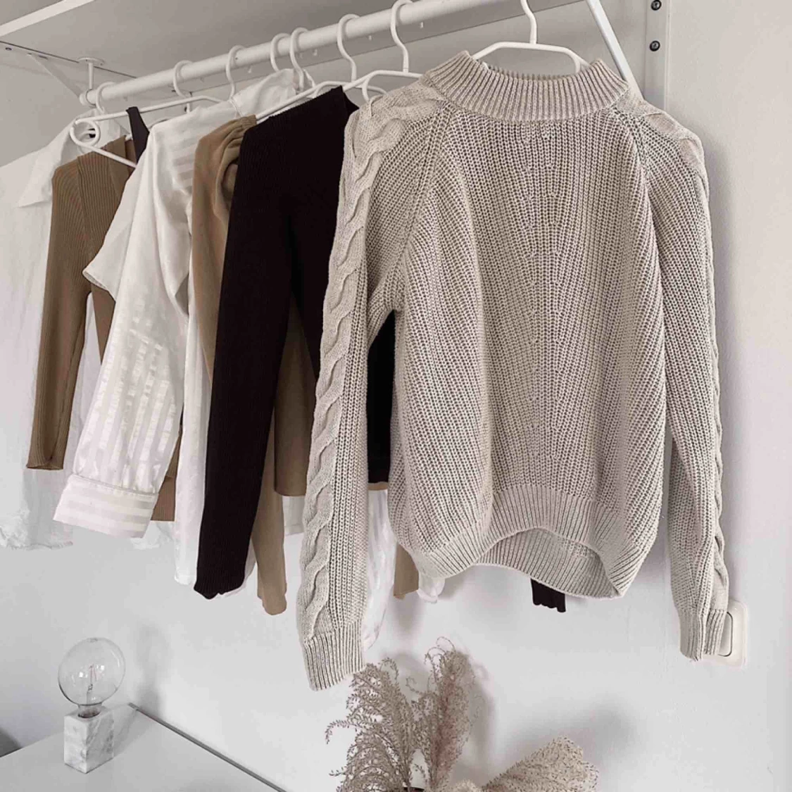 Superfin stickad beige/grå tröja i nyskick med fina detaljer längs ärmarna! I princip helt oanvänd. Passar mellan XXS-M beroende på hur man vill att den ska sitta!