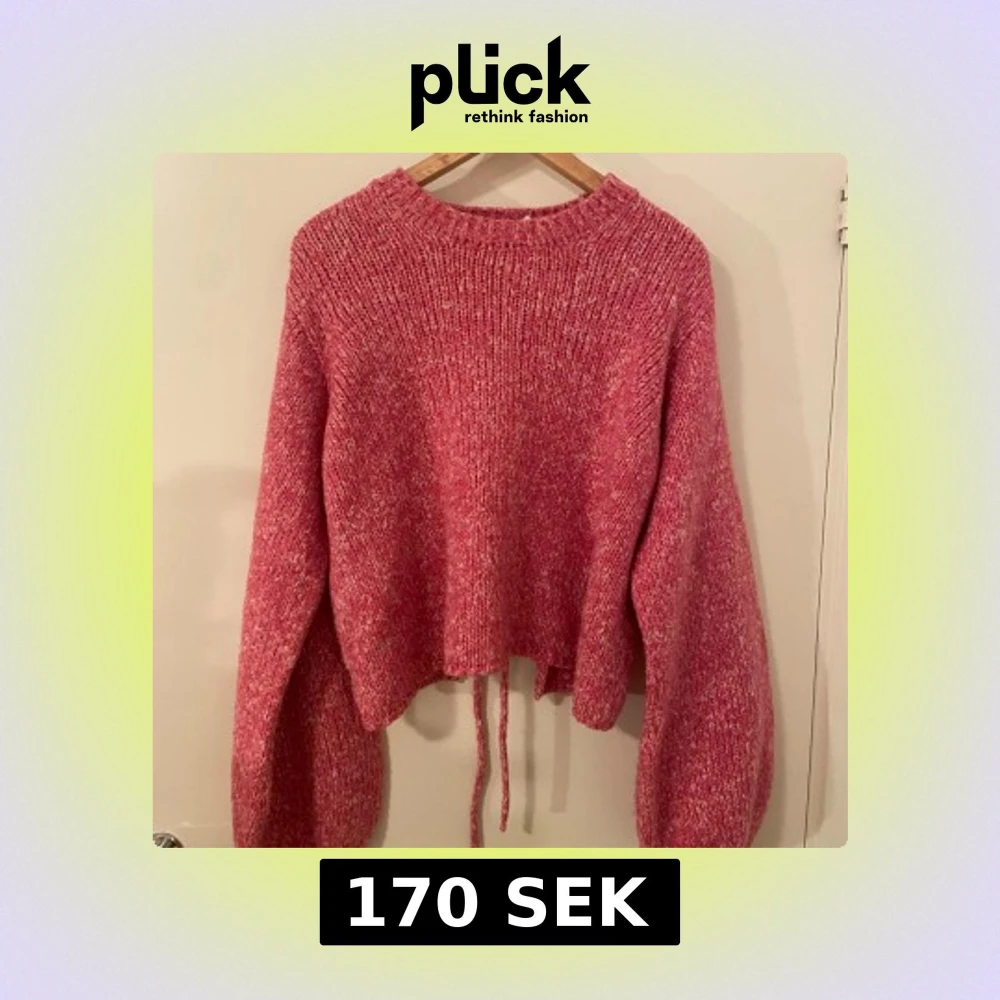 Superfin rosa stickad tröja från NA-KD med ballongärmar och cool öppen rygg med snörning. Använd fåtal gånger. När jag skulle ta bilderna såg jag att vänstra ärmen fått en liten, liten fläck men knappast något som syns i verkligheten!🥰
