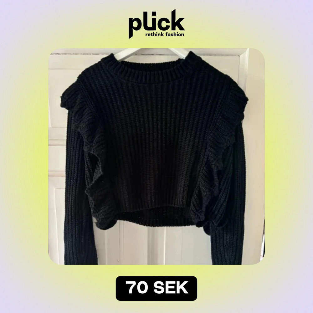 Stickad tröja med lite volangerna fram till. Bra skick.