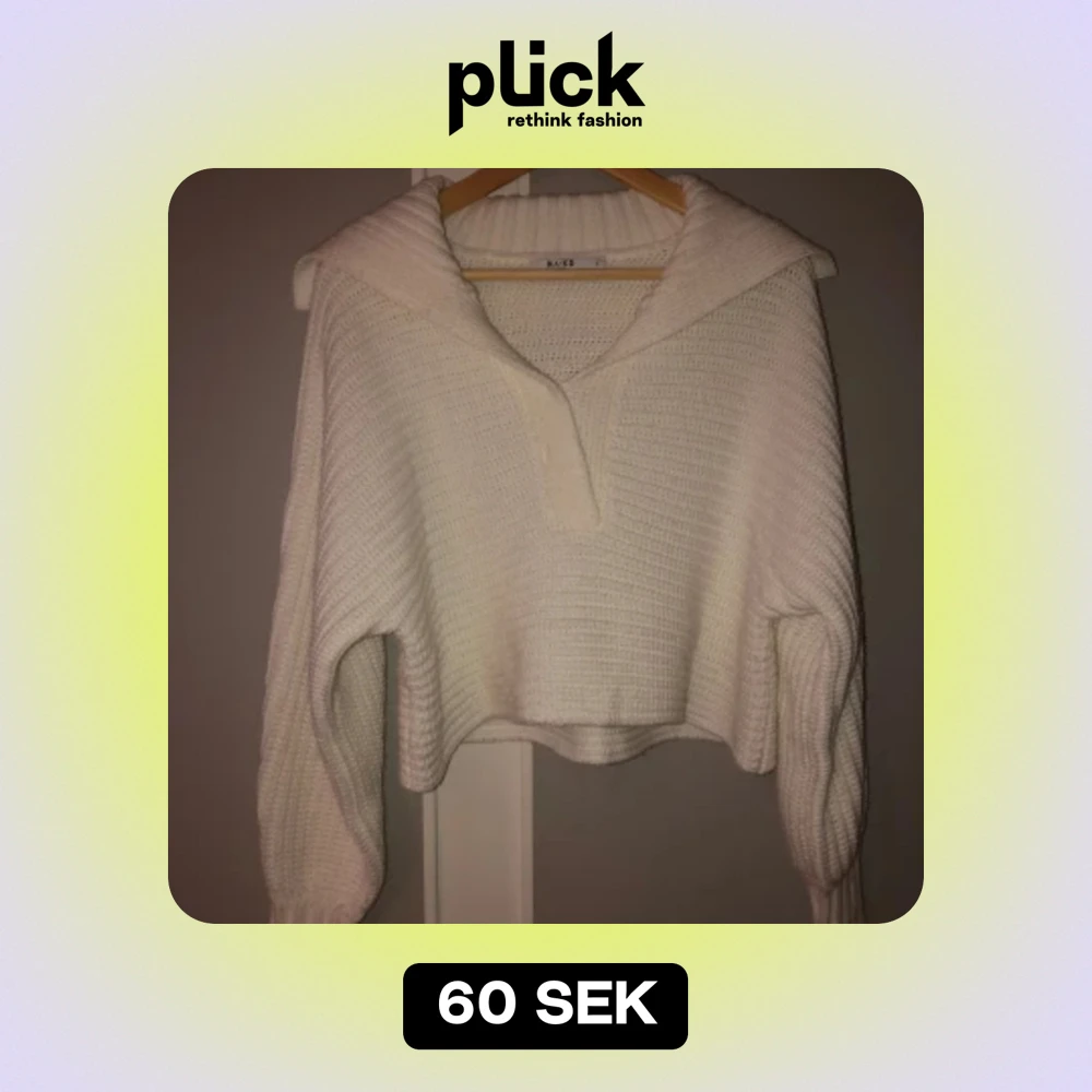 Vit stickad tröja från NA-KD i storlek S. Bra passform och bra kvalité. Inga synliga defekter eller tecken på användning, fortfarande i väldigt bra skick✨