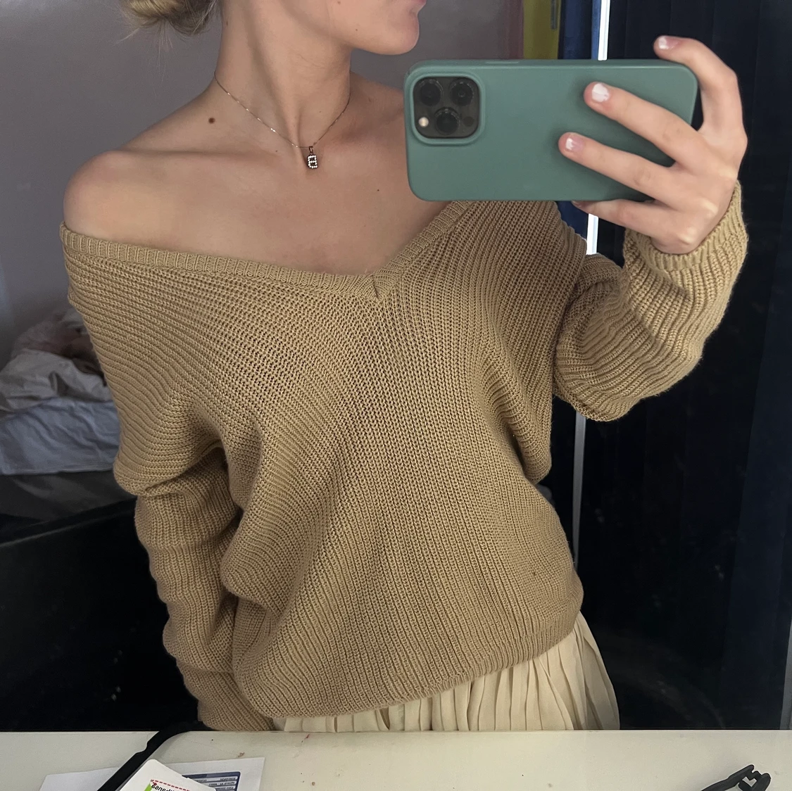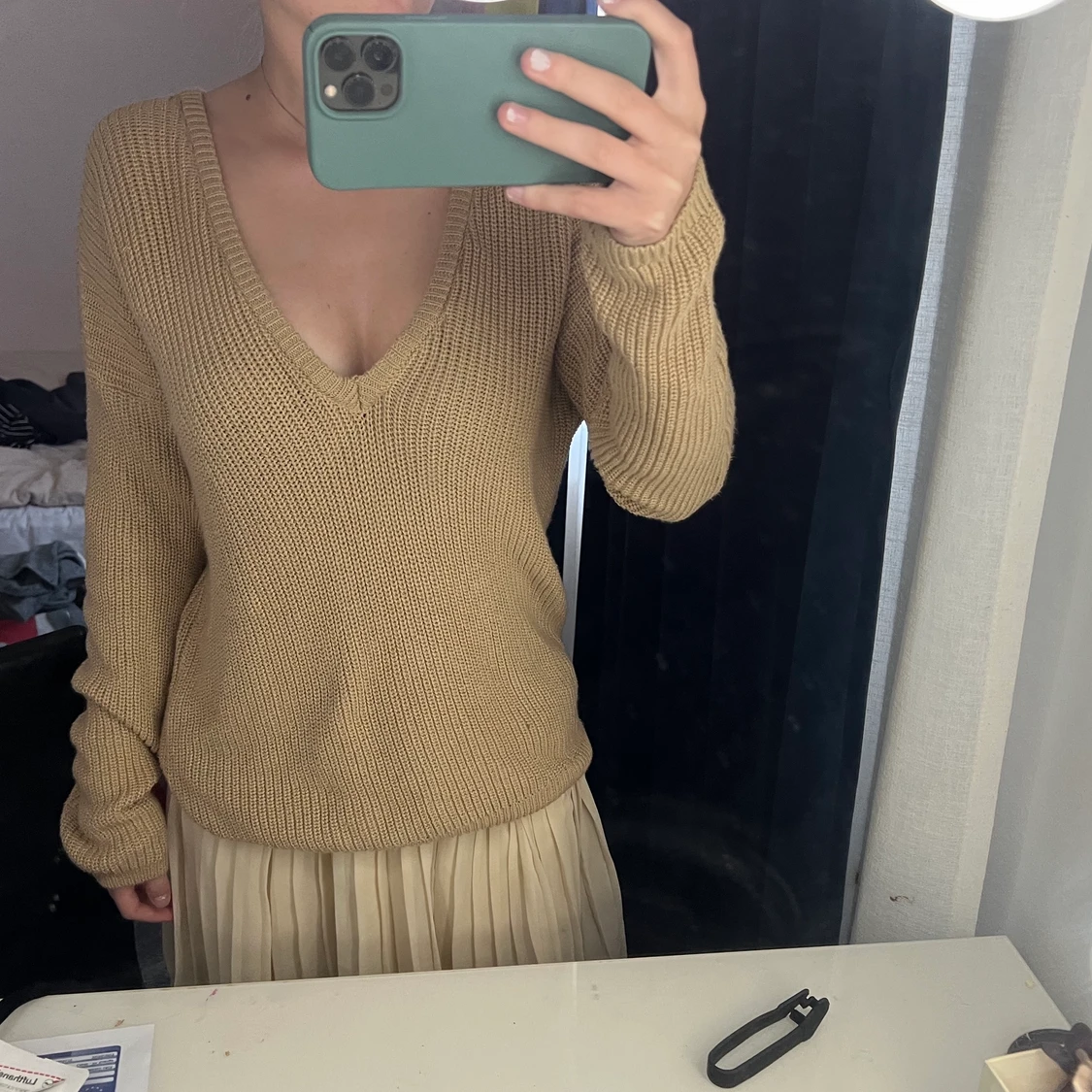 Stickad tröja ifrån Nakd, den är stor i storleken står storlek xxs men e får stor på mig som brukar ha S👍🏻💓