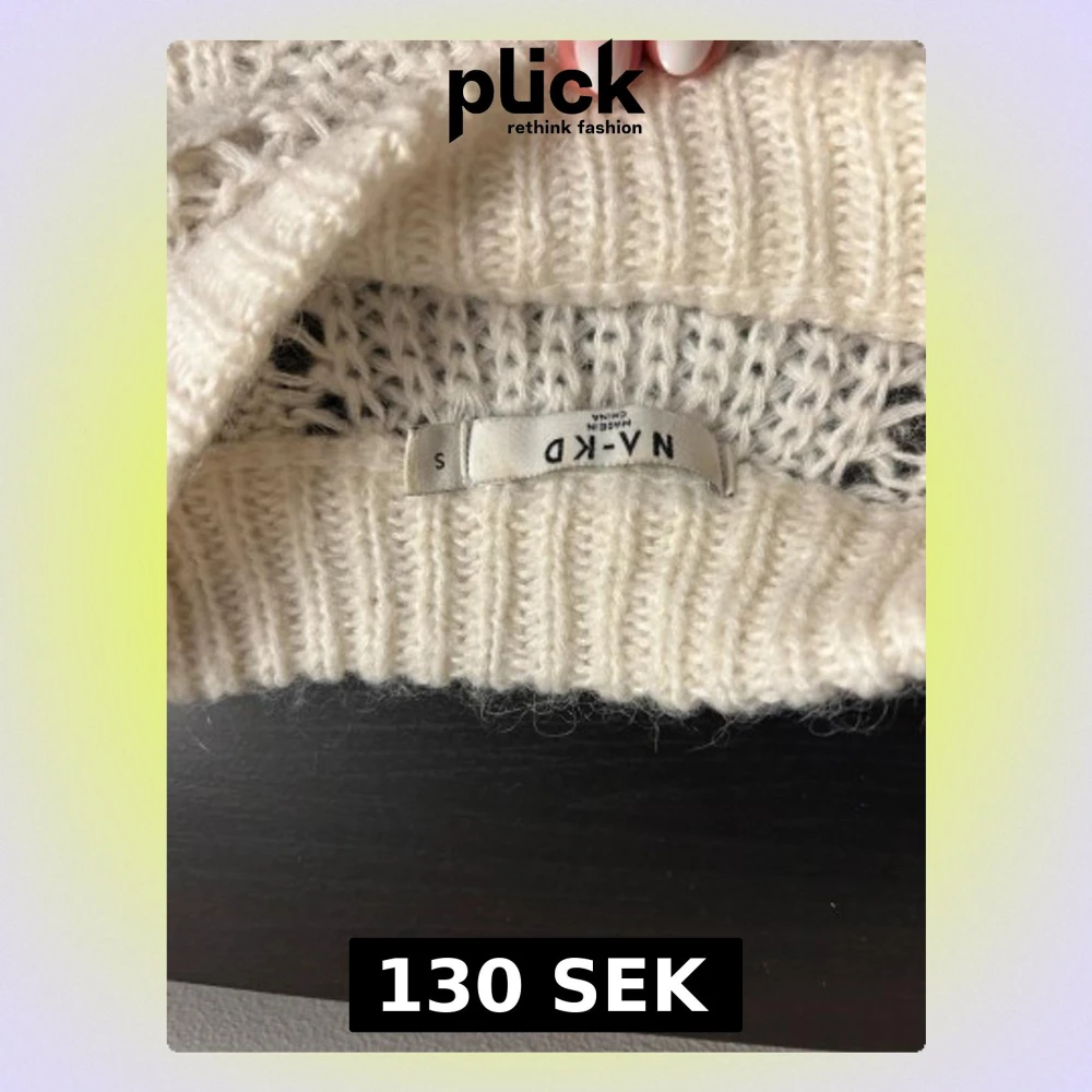 Säljer en vit stickad tröja från NA-KD i storlek S. Tröjan har ett snyggt hålmönster framtill och på ärmarna, samt ribbade muddar vid hals, ärmslut och nederkant. Perfekt för dig som gillar mysiga och trendiga plagg med lite extra detaljer.
