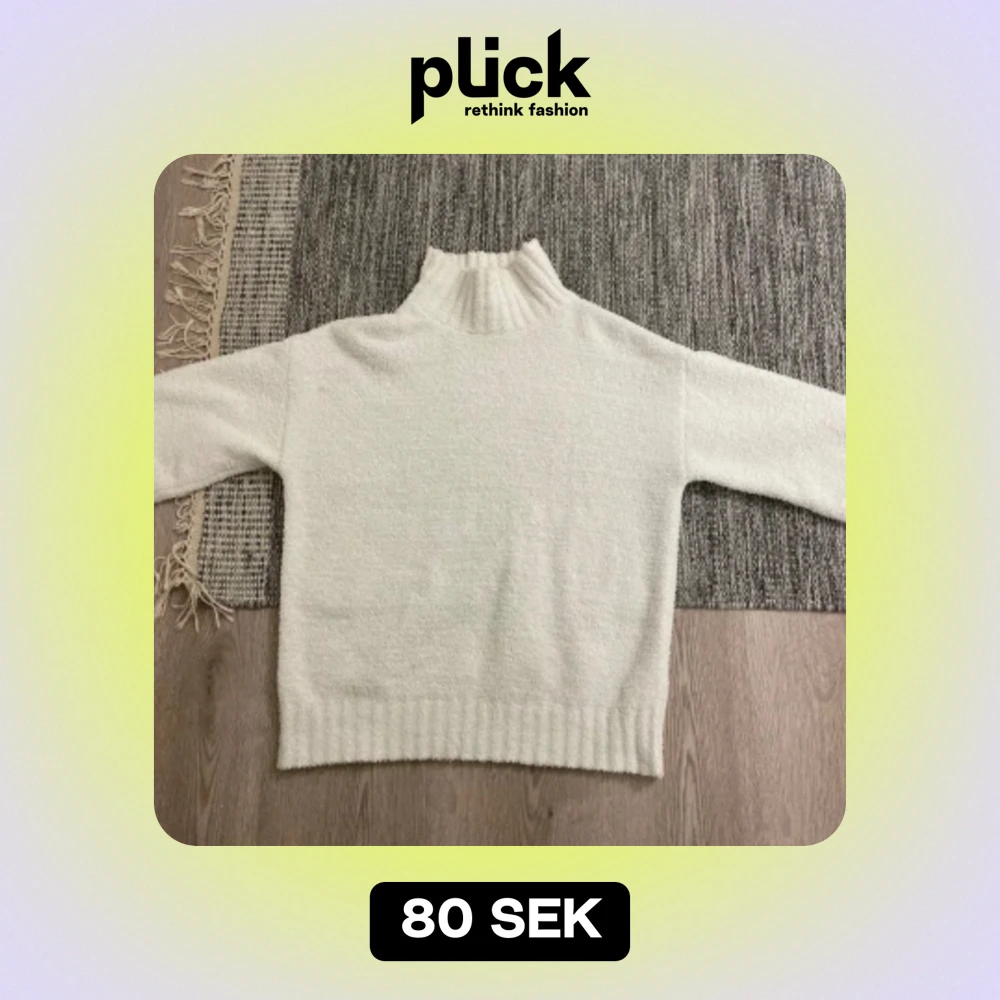 Vit stickad tröja, nästan oanvänd Tyget ska vara ”lurvigt”