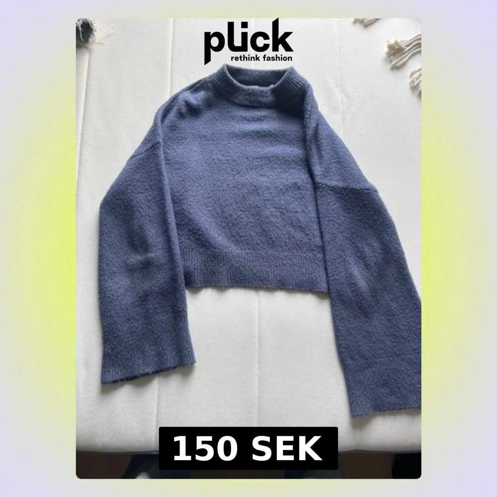 Säljer en blå croppad stickad tröja från NA-KD. Tröjan har långa ärmar, ribbad halsringning och är gjord i ett mjukt material. Perfekt för dig som gillar trendiga och bekväma plagg med avslappnad passform.