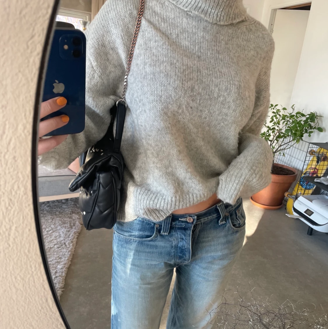 Grå stickad tröja från zara med polokrage, använd fåtal gånger❤️🔥