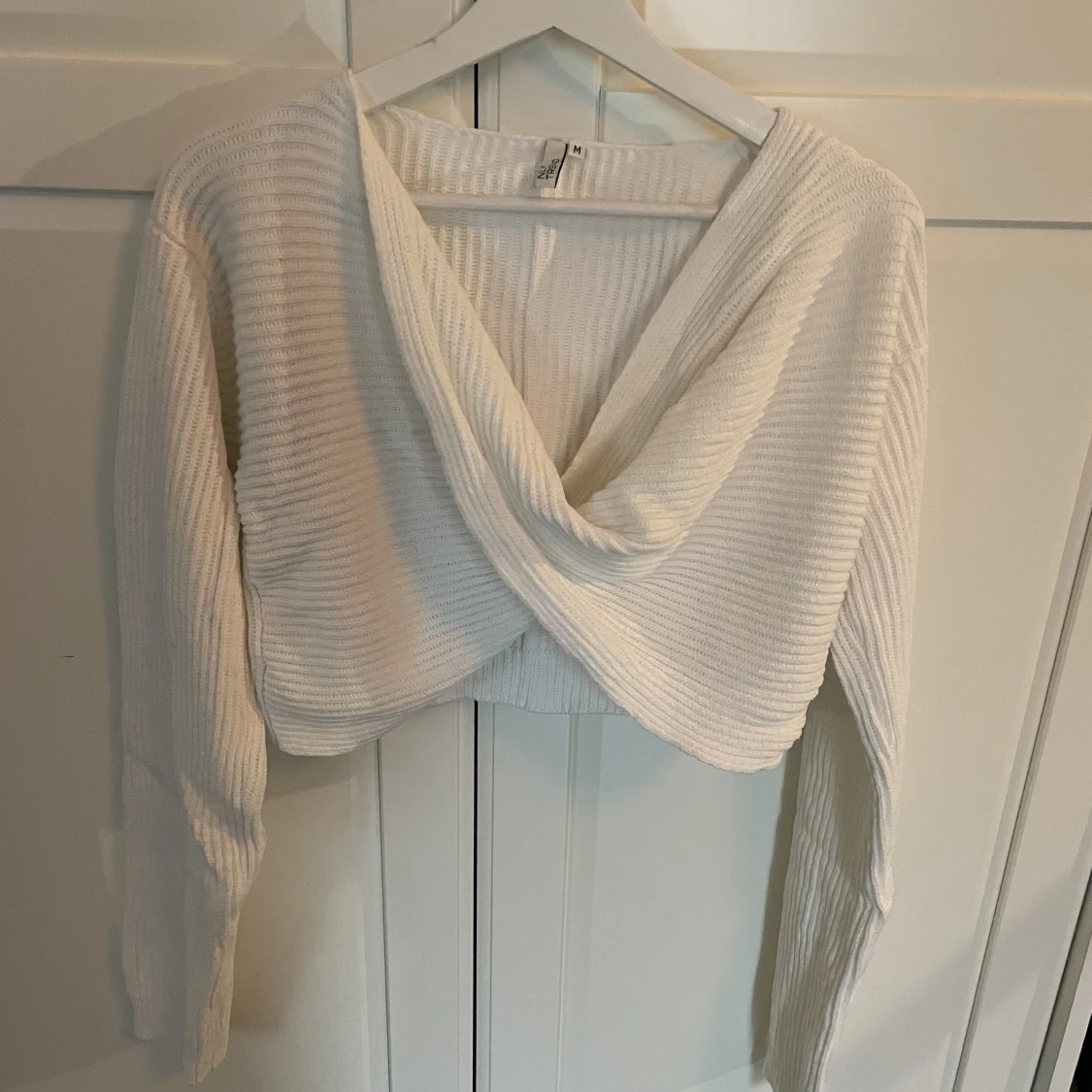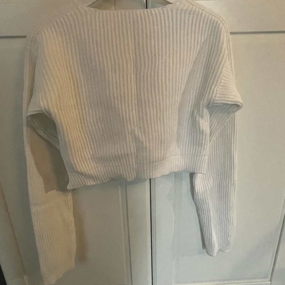 Stickad tröja i färgen vit. I ny skick. Bara en gång använd. Storlek M men funkar för storlek S. Priset kan diskuteras.