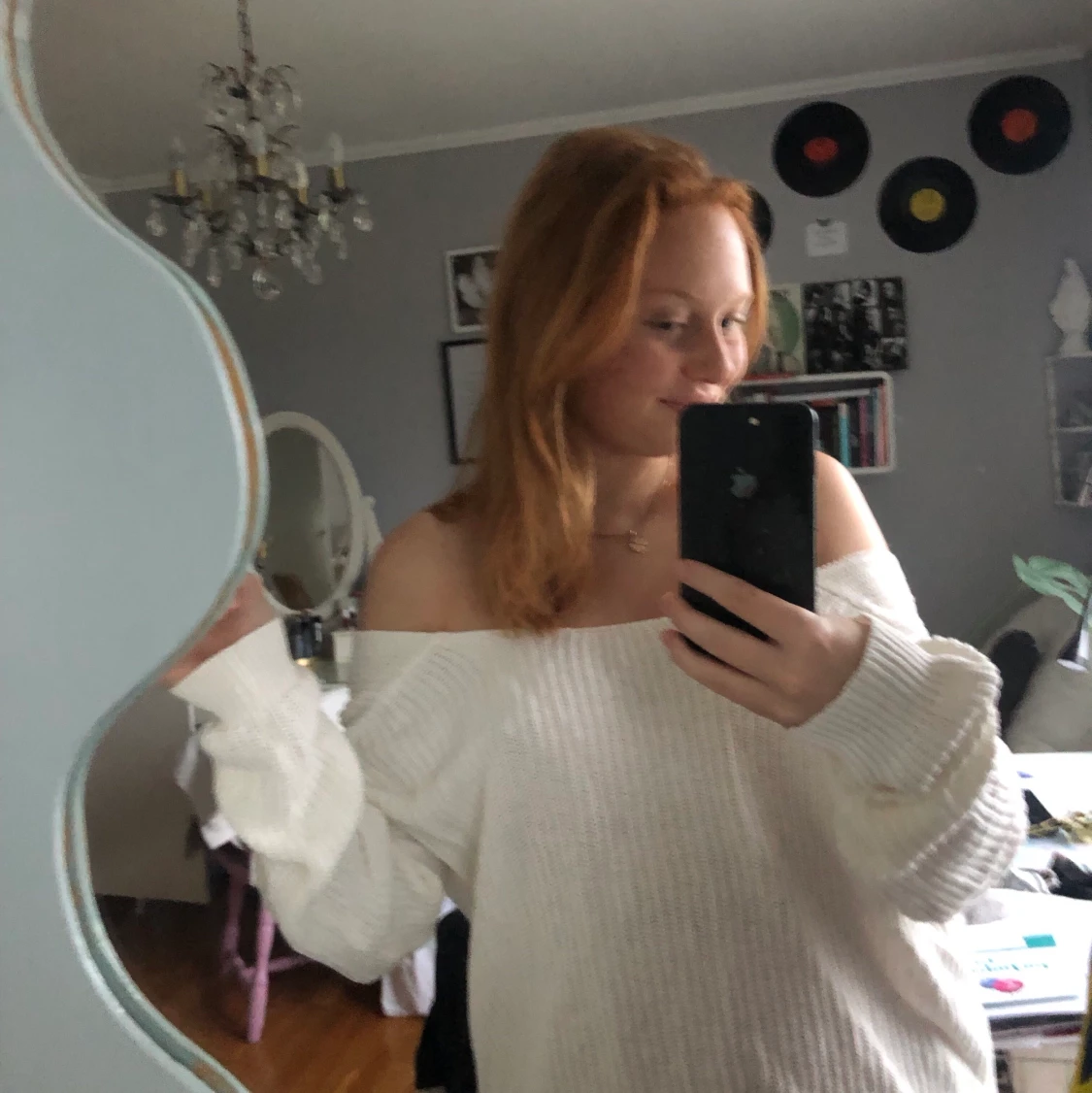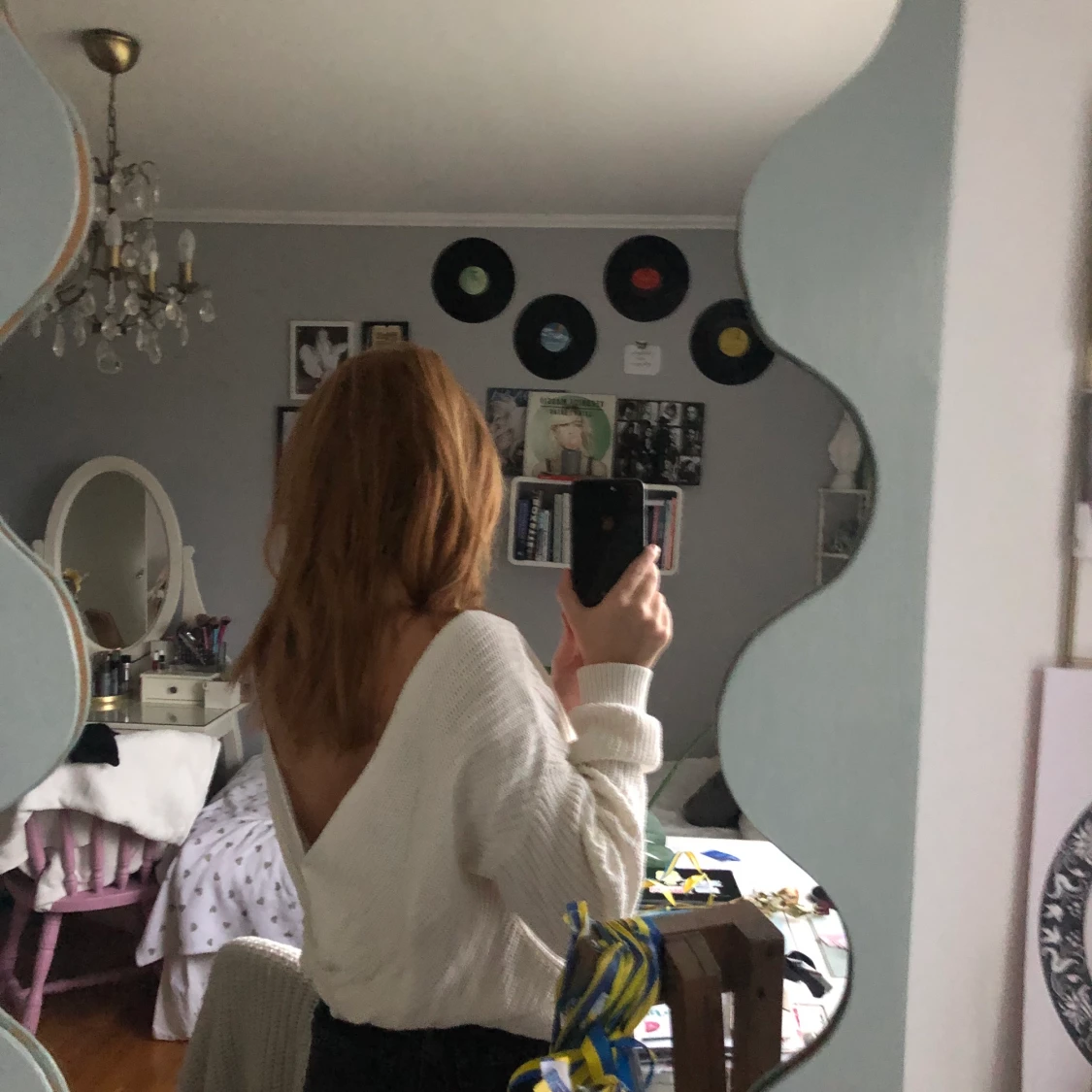 Fin vit stickad tröja som är ganska djup i ryggen från Nelly