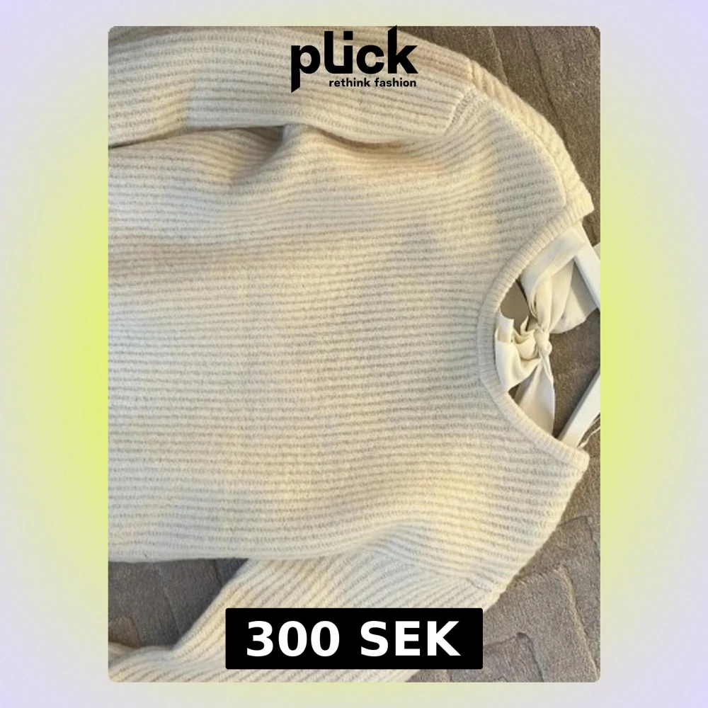 Supersöt krämvit stickad tröja med ribbad struktur och en unik detalj i form av en stor rosett i nacken. Tröjan har rund halsringning och långa ärmar. Perfekt för dig som gillar stilrena plagg med en twist.