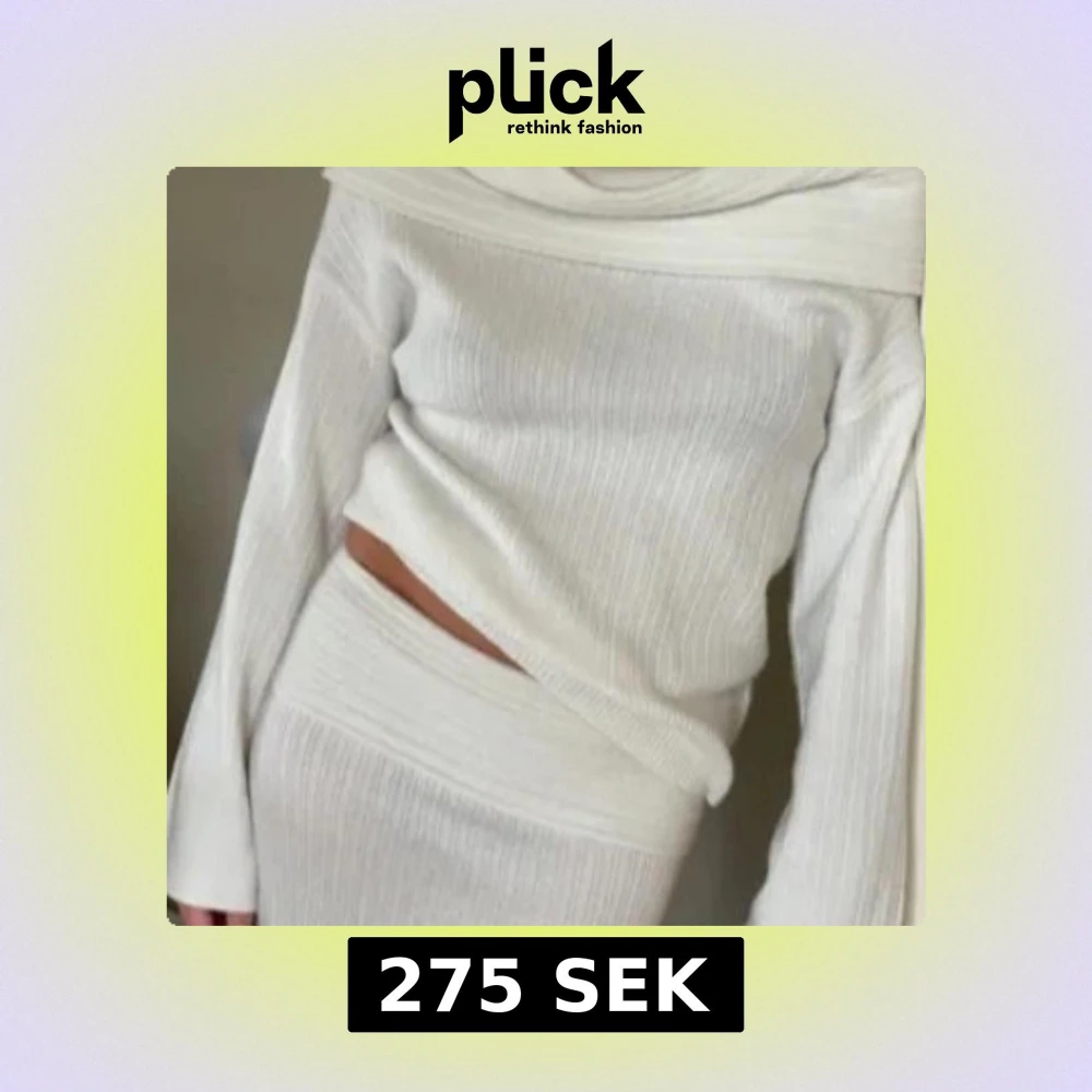 Snygg vit ribbad topp med offshoulder-design och långa ärmar. Perfekt för en stilren look. Den har en figurnära passform och är gjord i ett mjukt material. Säljer även matchande kjol