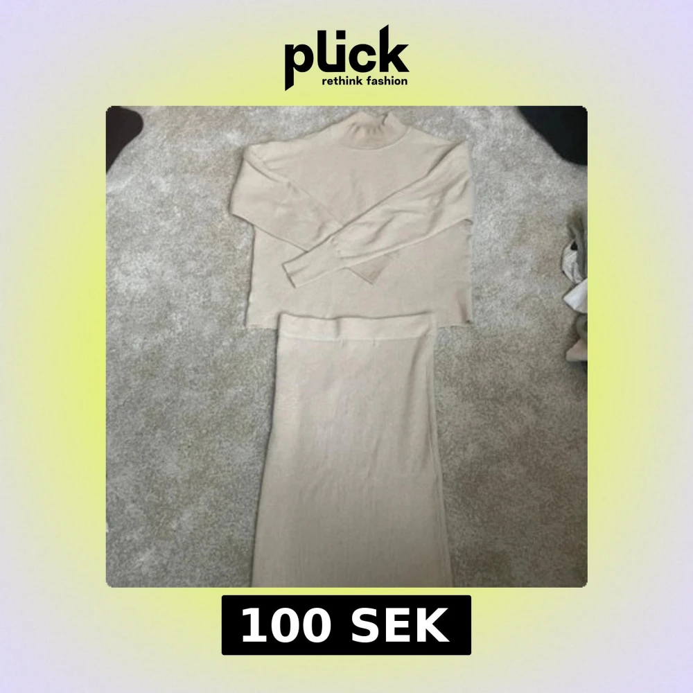 Säljer en beige, ribbstickad tröja och långkjol i set. Kjolen har en rak och enkel siluett med mjukt stickat material som känns supermysigt. Perfekt för dig som gillar en clean och stilren look. Kjolen är midjehög och passar till många olika outfits.