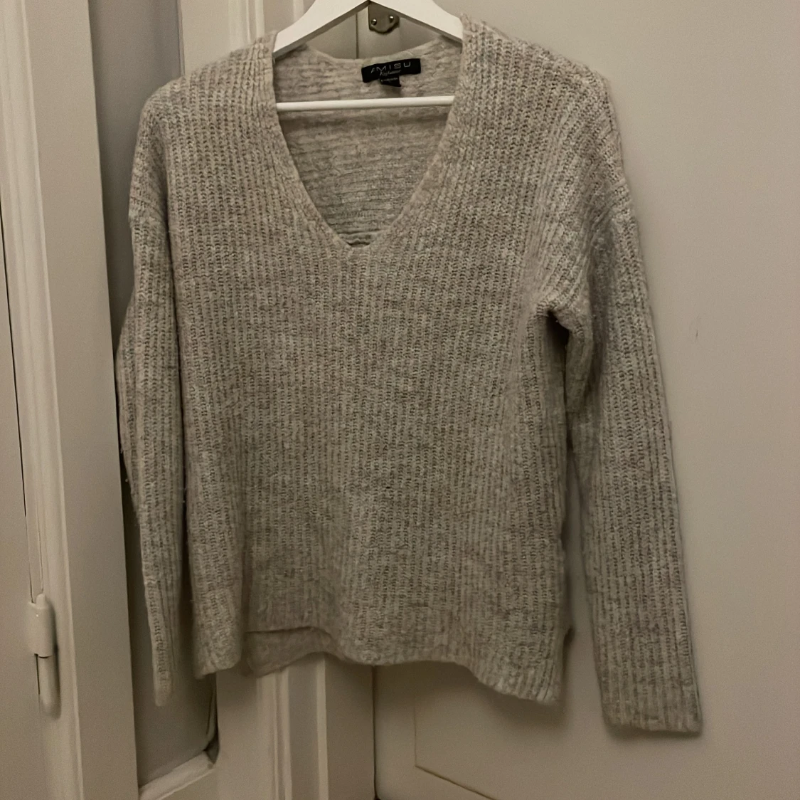Mysig ljus grå stickad tröja från Amisu med v-ringning. Lite slit längst ner på båda sidorna🩷