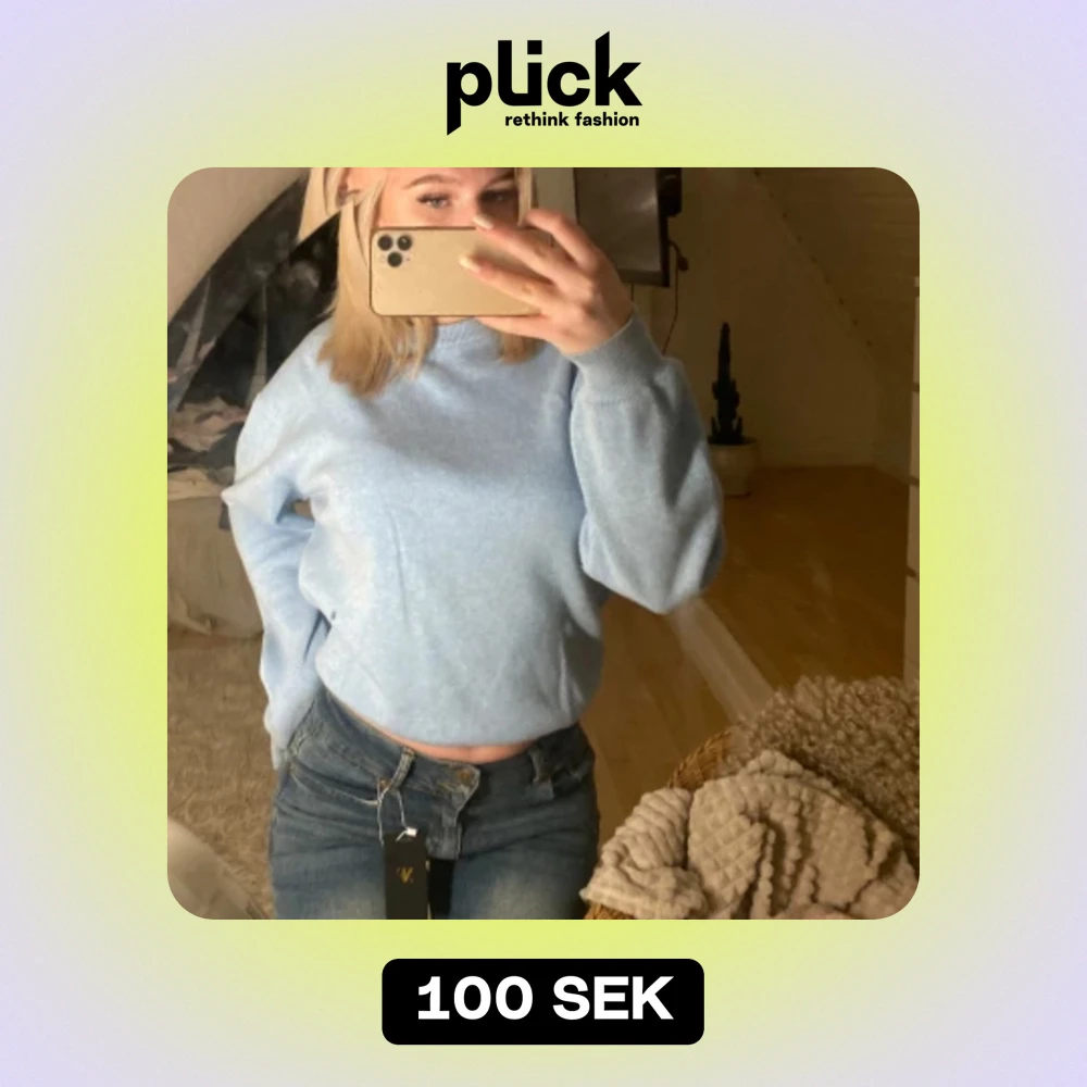 Ljusblå stickad tröja. Oversized men endp bra passform. Super söt färg! Gosig o varm! 💗