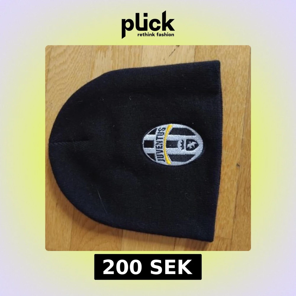 Svart stickad mössa med Juventus klubbmärke broderat framtill i vitt, svart och gult. Enkel och stilren design, perfekt för dig som vill visa ditt stöd för laget. Mjuk och skön passform som håller dig varm under kyliga dagar.