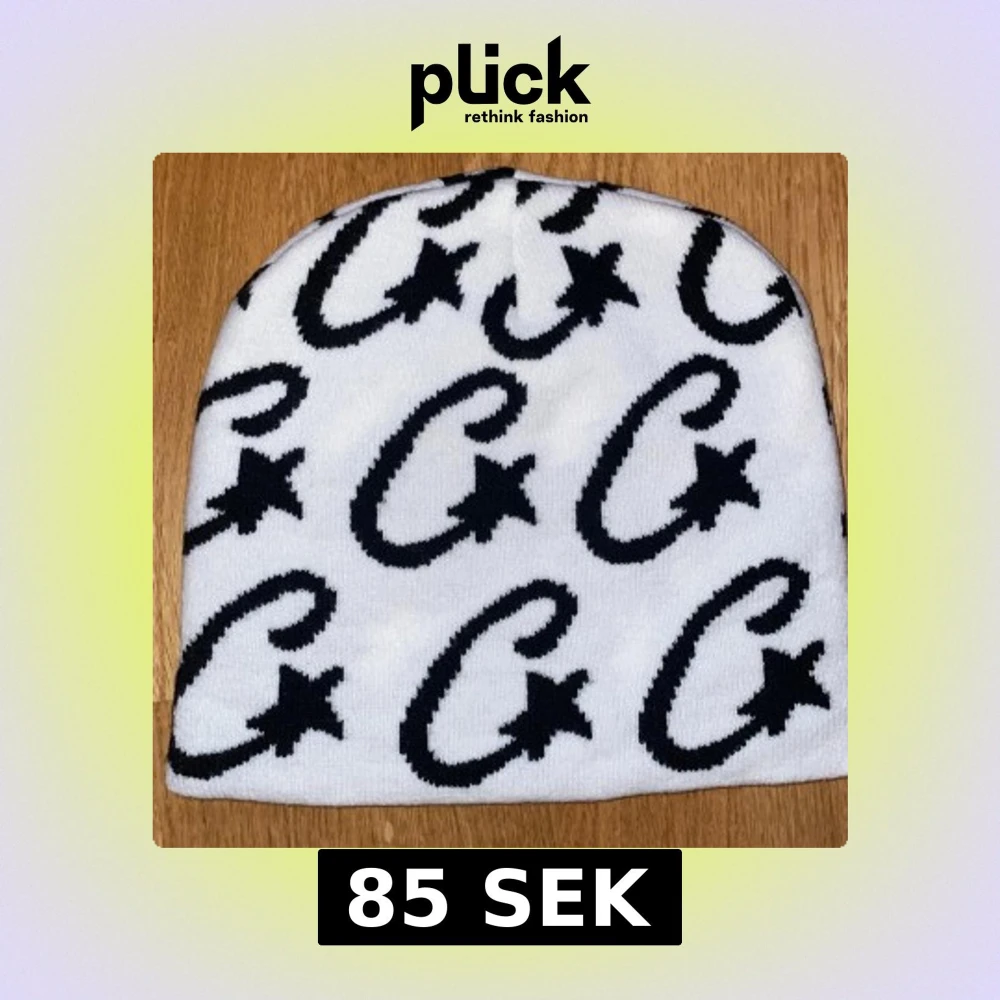 Snygg vit mössa med svart grafiskt mönster av stora G:n och stjärnor över hela ytan. Mjuk och stretchig, perfekt för att hålla värmen och sticka ut i mängden. Passar dig som gillar streetstyle och vill ha en cool accessoar till vintern.