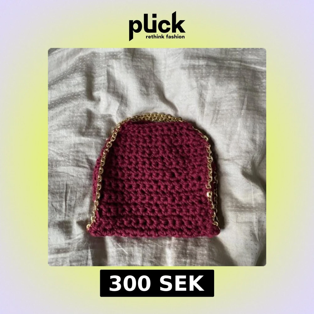 Superfin vinröd virkad axelväska med chunky guldfärgad kedja som axelrem. Väskan har en mjuk, handgjord känsla och är perfekt för dig som vill ha något unikt och trendigt. Materialet för att göra väskan har kostat 250!!