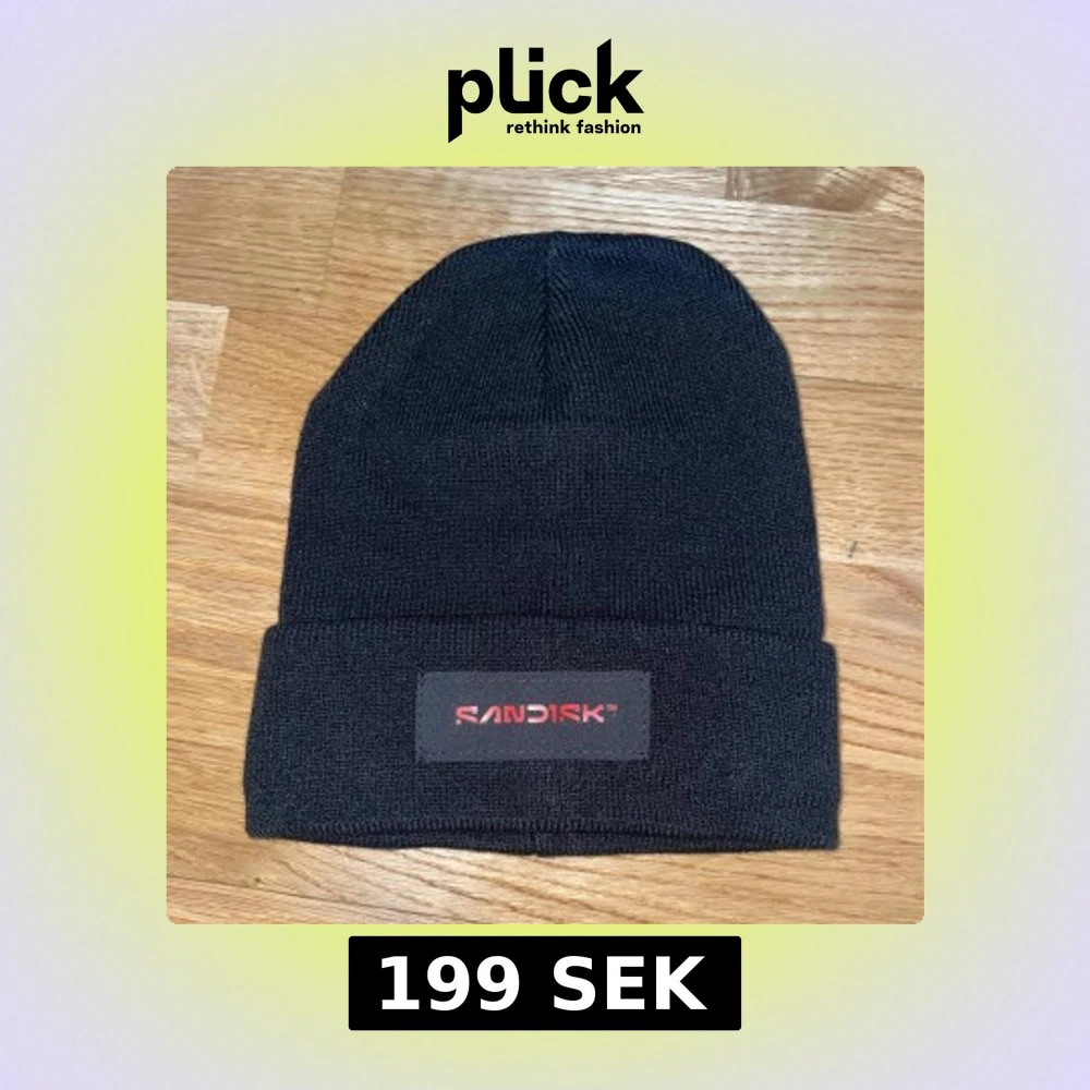 Svart, klassisk stickad mössa med uppvikt kant och SanDisk-logga i rött framtill. Enkel och stilren design som passar perfekt till kalla dagar. Tillverkad i mjukt material för skön känsla.