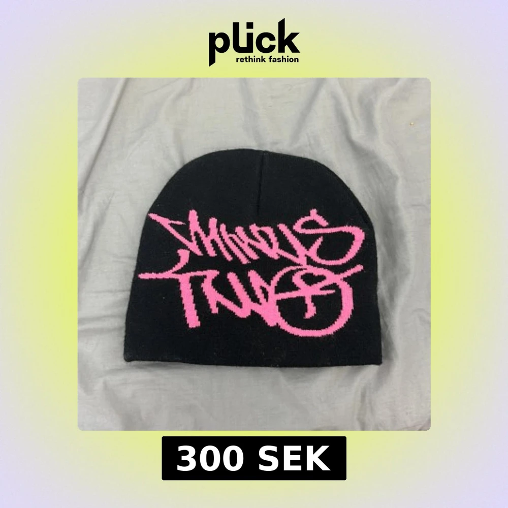 Cool svart mössa med ett stort rosa graffiti-inspirerat tryck framtill. Mössan är stickad och har en klassisk form som sitter snyggt på huvudet. Perfekt accessoar för att sticka ut i mängden och ge din outfit en streetstyle vibe.