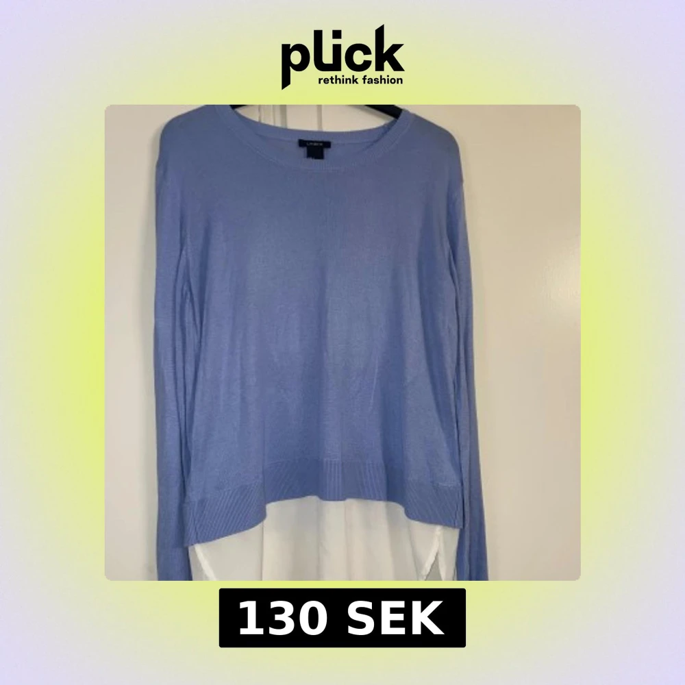 Supersnygg ljusblå tröja från Lindex i storlek L med lång ärm och rund hals. Tröjan har en cool detalj med vit, omlott-liknande nederdel som ger lager-på-lager känsla. Mjuk och tunn stickad kvalitet, perfekt för vår och höst.