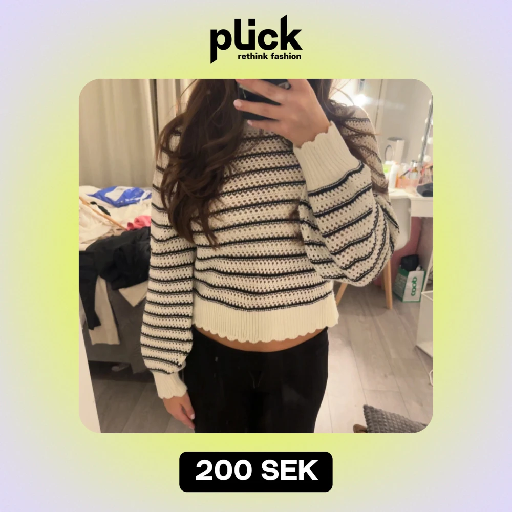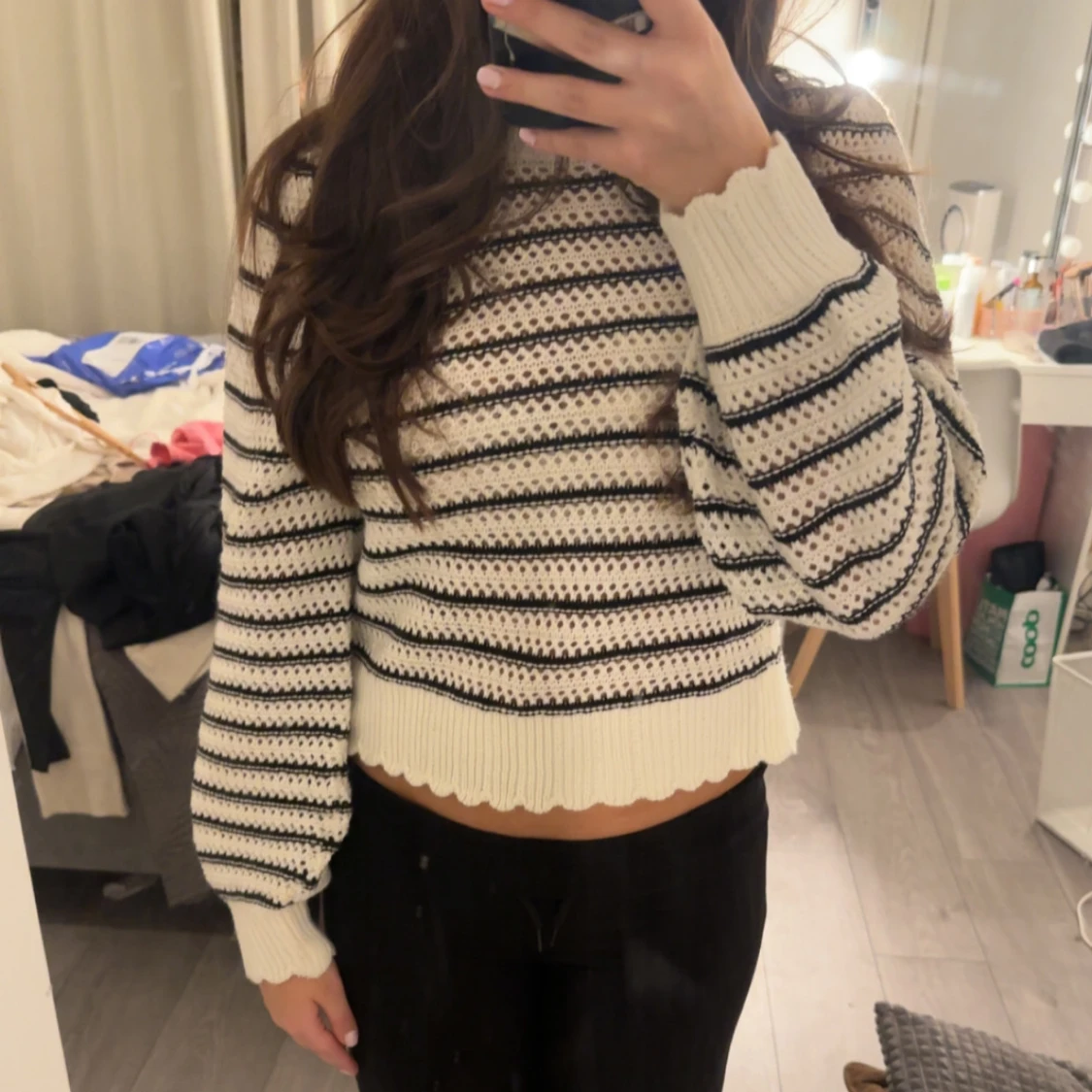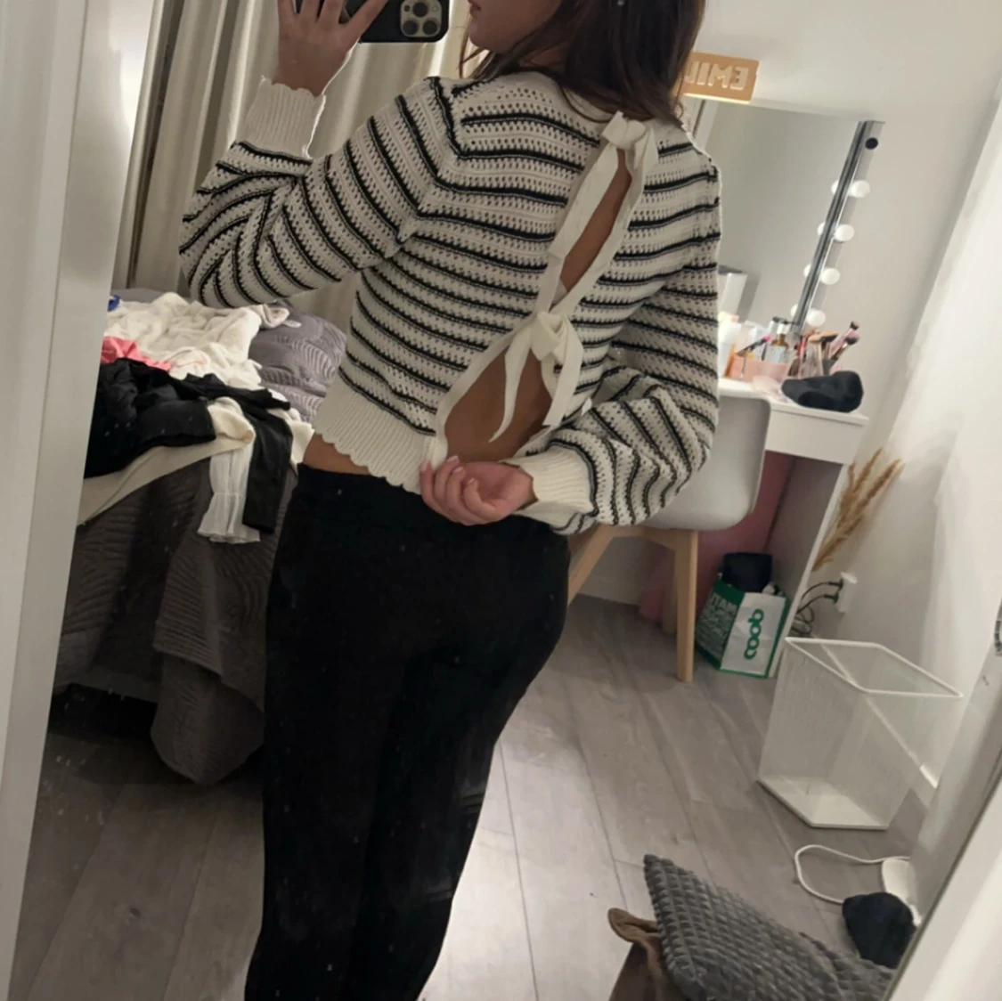 Jätte fin stickad tröja med öppen rygg, från hm. Man kan ha tröjan på olika sätt, och du kan även ha den åt andra hållet med linne under 💗 i nyckick.