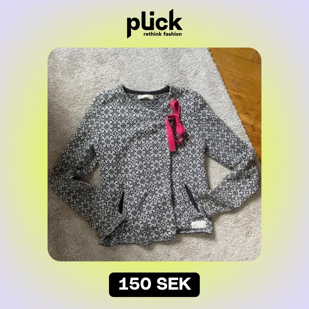 Fin svart vit kofta med en rosa rosette, i strl 1 (S). Sparsamt använd
