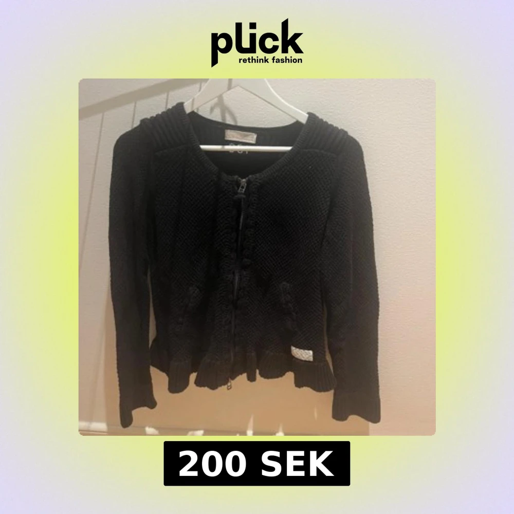 Svart kofta från Odd Molly med snygga detaljer längs dragkedjan och ribbad kant vid axlar och nederdel. Långärmad och med en liten vit Odd Molly-logga vid nederkanten. Perfekt för dig som gillar klassisk stil med en twist.