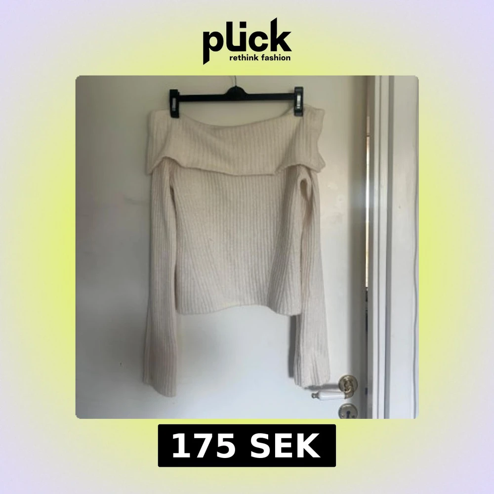 Denna stickade tröja är off shoulder och är super mysig och skönt material som inte kliar. Den är använd 1-2 gånger, så väldigt bra skick. Köpt för 350kr