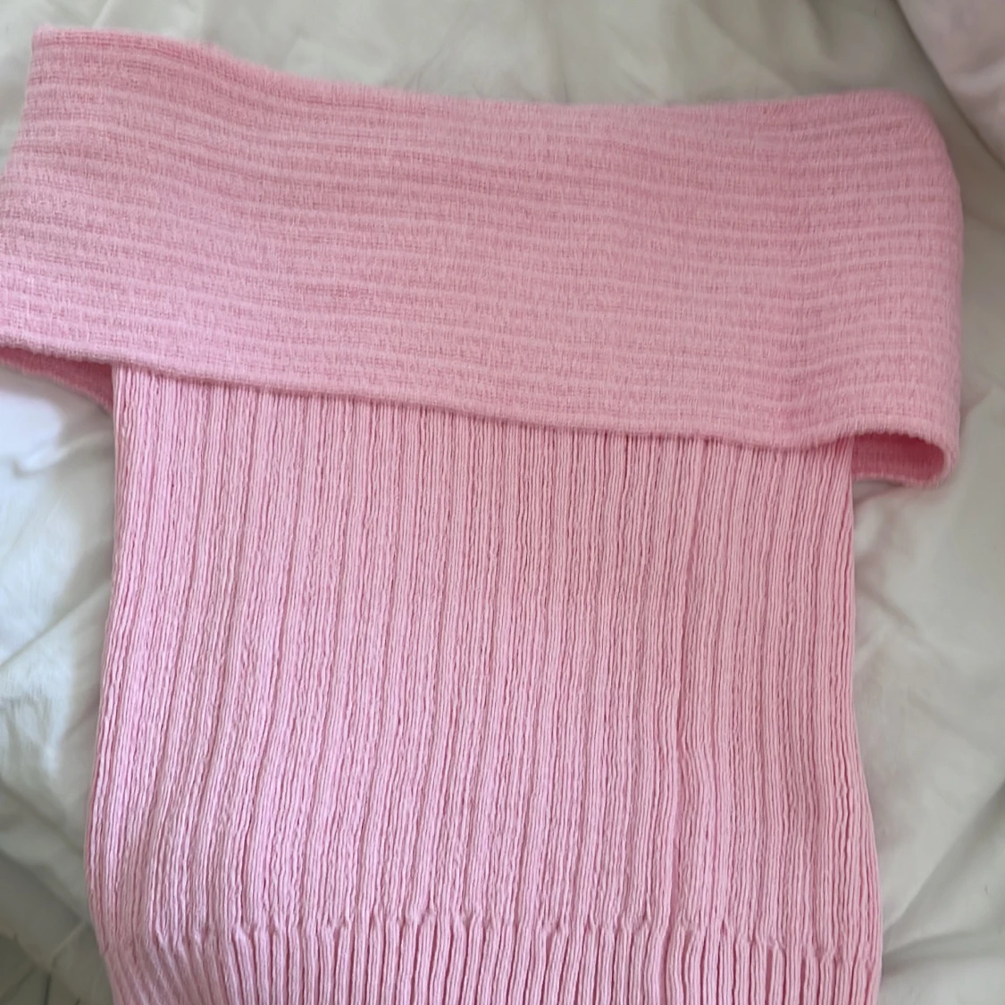 Jätte gullig rosa ofshoulder tröja! I ett stickat material. Storlek XS men skulle säga att det passar S också. Aldrig använt. PRIS KAN DISKUTERAS VID SNABBKÖP💕