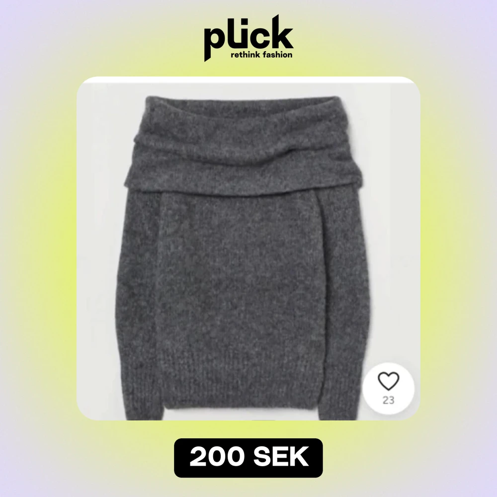 En stickad off shoulder tröja i grå från Hm i storlek Xs. Lite nopprig. (Lånad bild)