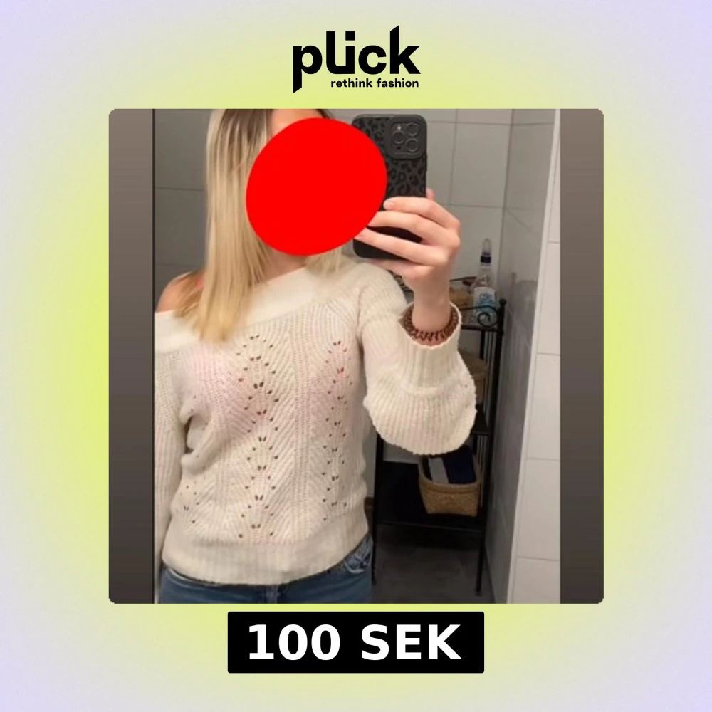Offshoulder stickad vit tröja