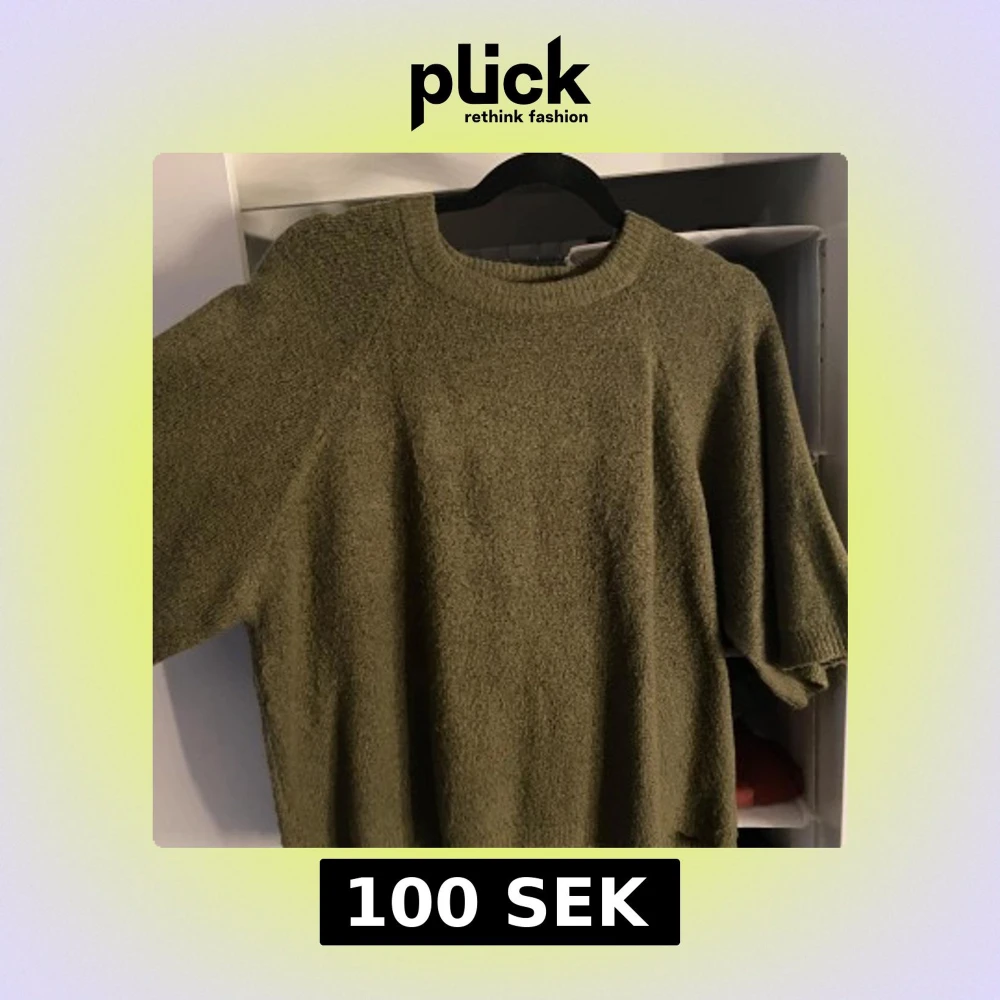 Säljer en olivgrön stickad tröja från 157. Tröjan har en rund halsringning och är perfekt för kyligare dagar. Den har en enkel och stilren design som passar till många olika outfits.