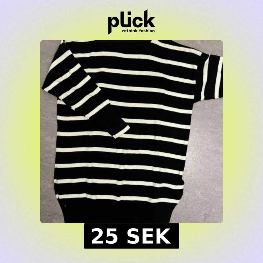 Säljer en svart stickad tröja med vita horisontella ränder från SHEIN. Tröjan har lång ärm och rund halsringning. Perfekt för dig som gillar klassiska mönster och enkel stil. Även slits vid slutet. Aldrig använd. Kan sälja billigare!💕