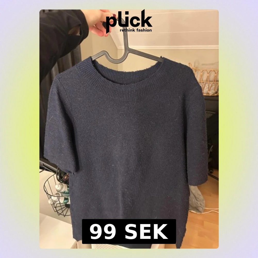 Jätte fin stickad mörkblå tröja med korta ärmar.