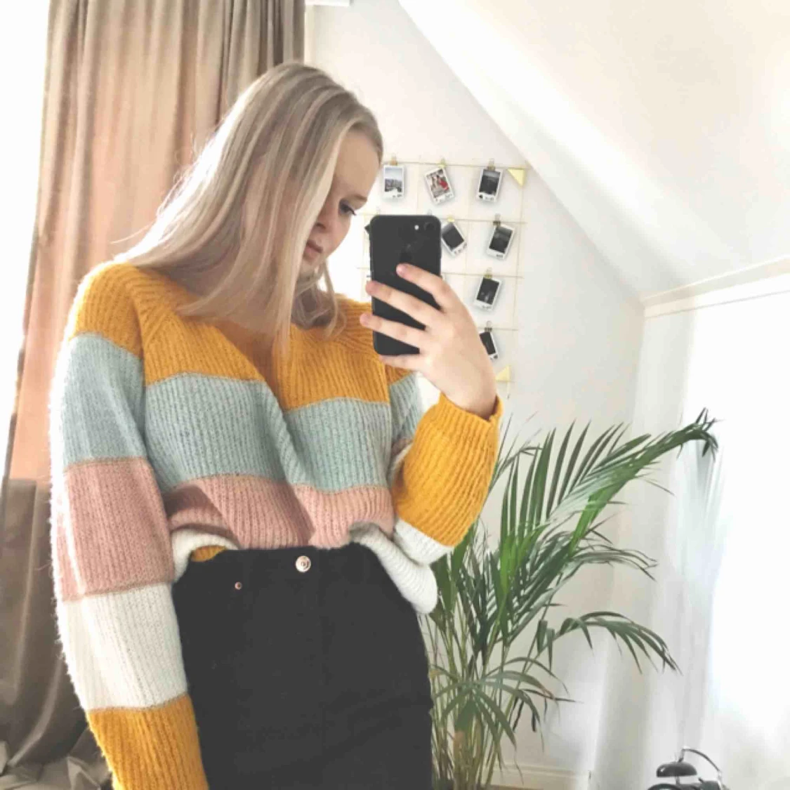 Super fin stickad tröja som funkar för både sommar och vinter. Tror det är storlek L men sitter bra på mig som är en S. Köparen betalar frakt på 55kr och tar endast swish