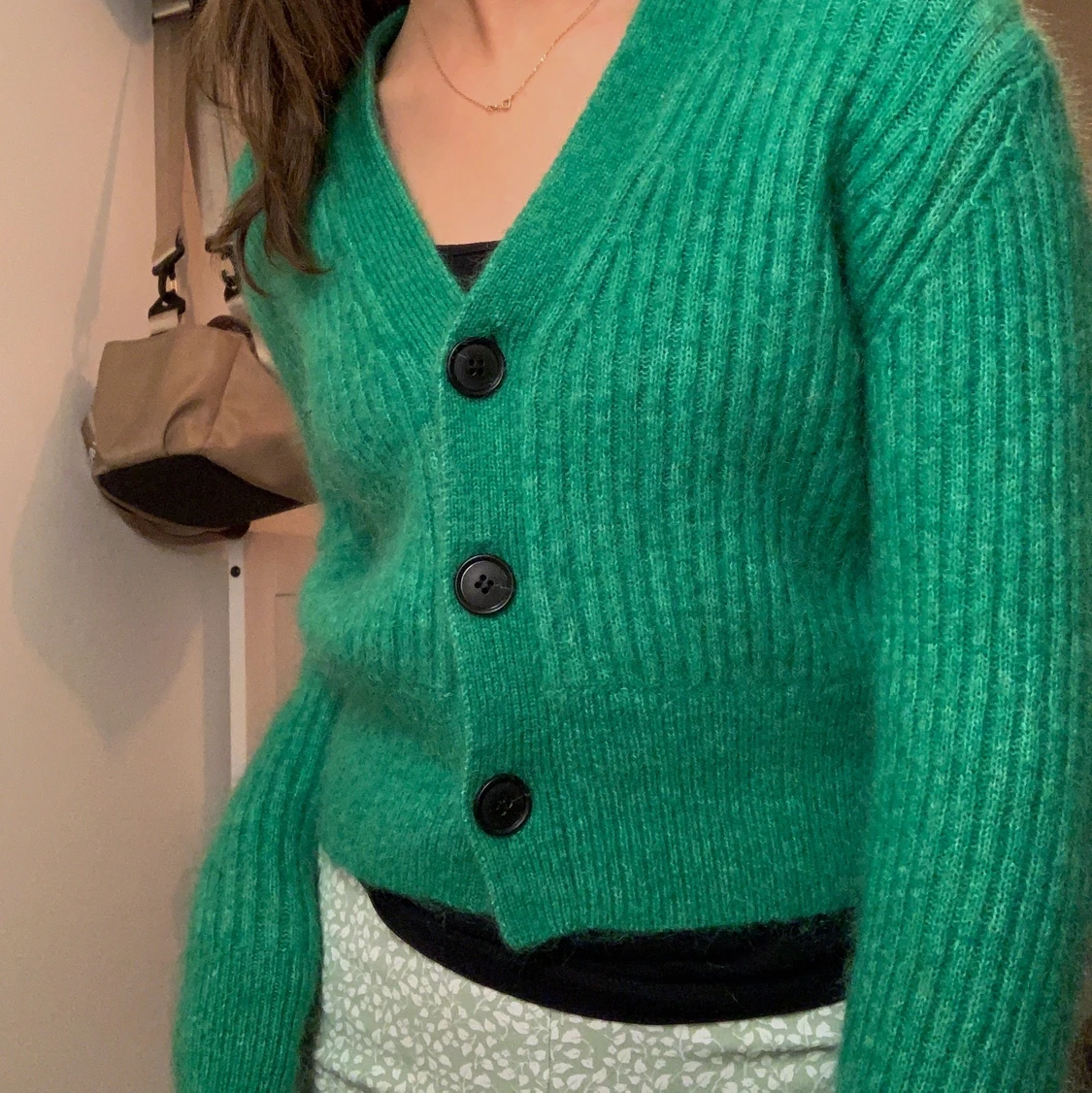 Säljer min gröna långa an other stories kofta med garn i alpackamix. Nypris ca 900kr från & other stories. Knappt använd så inga fläckar och inget trasigt