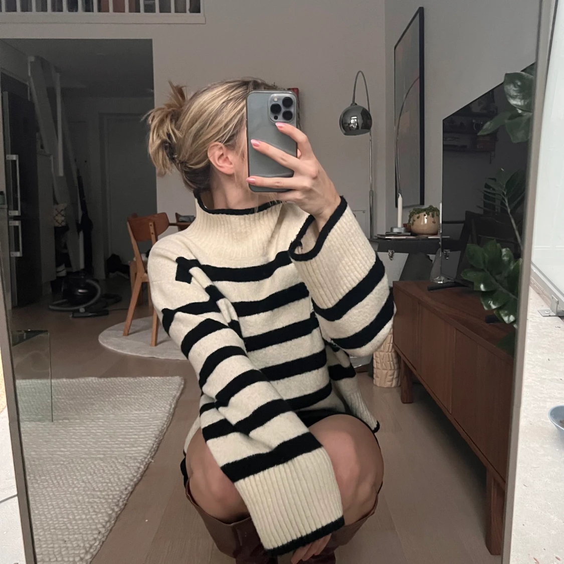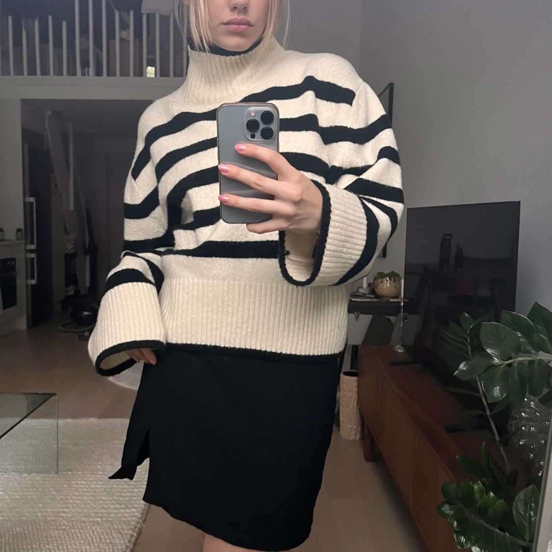 Intressekoll på min stickade tröja från other stories. En oversized S. Jag är vanligtvis S-M och är 168 cm. Ullblandning. Nypris 990.🖤 FINNS KVAR så fråga inte❣️