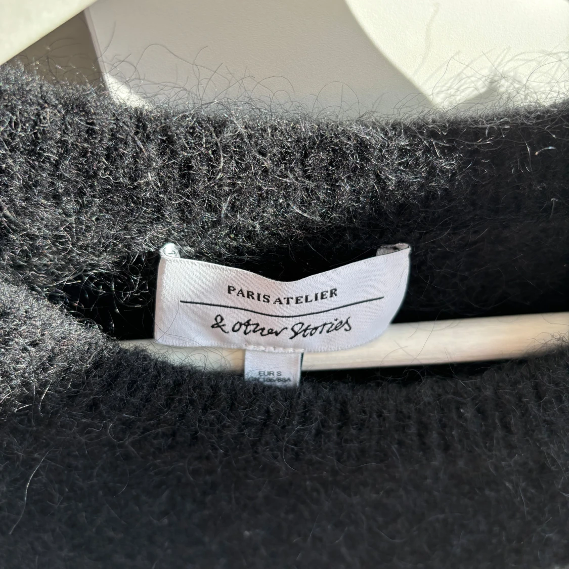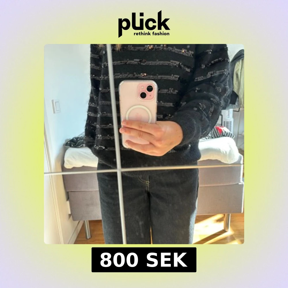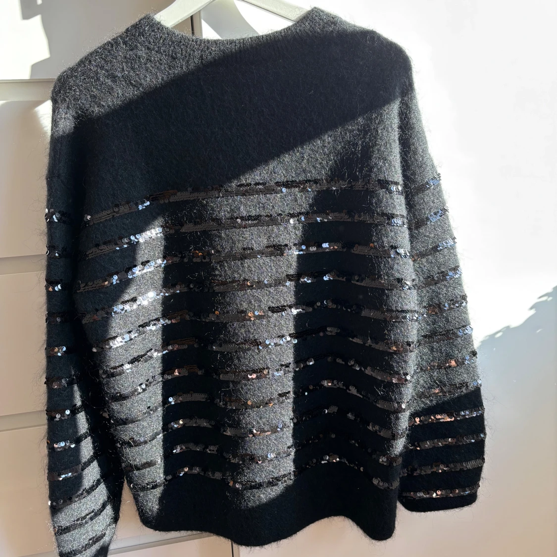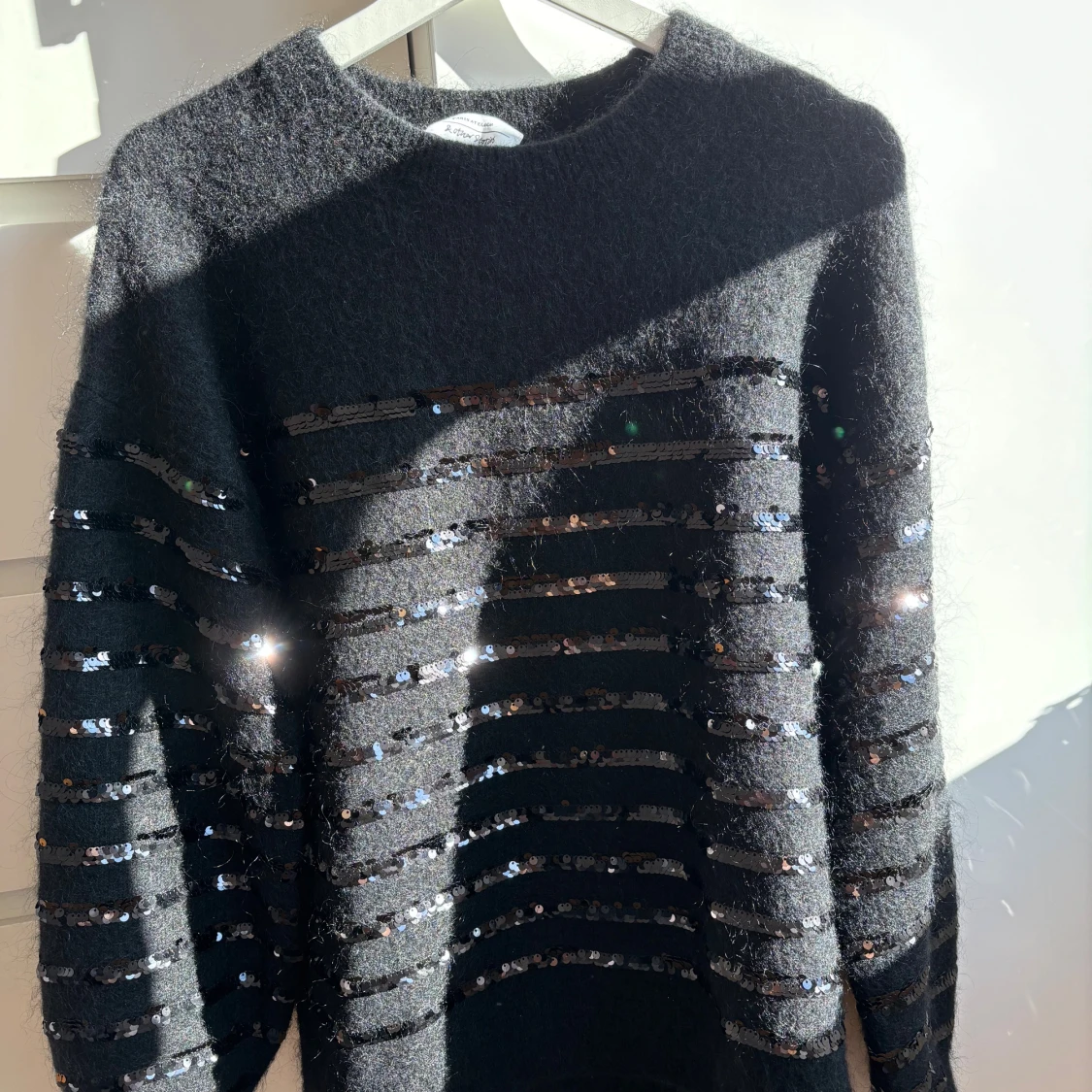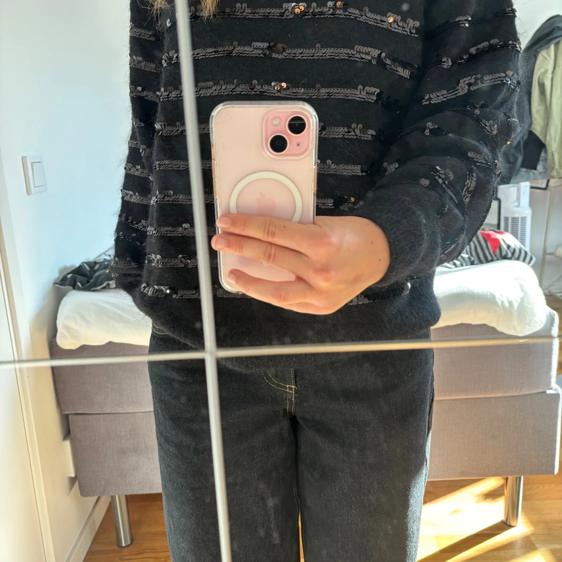 Svart stickad tröja från & other stories med glitterränder. Använd 1 gång, aldrig tvättad. Nypris 1200 kr.