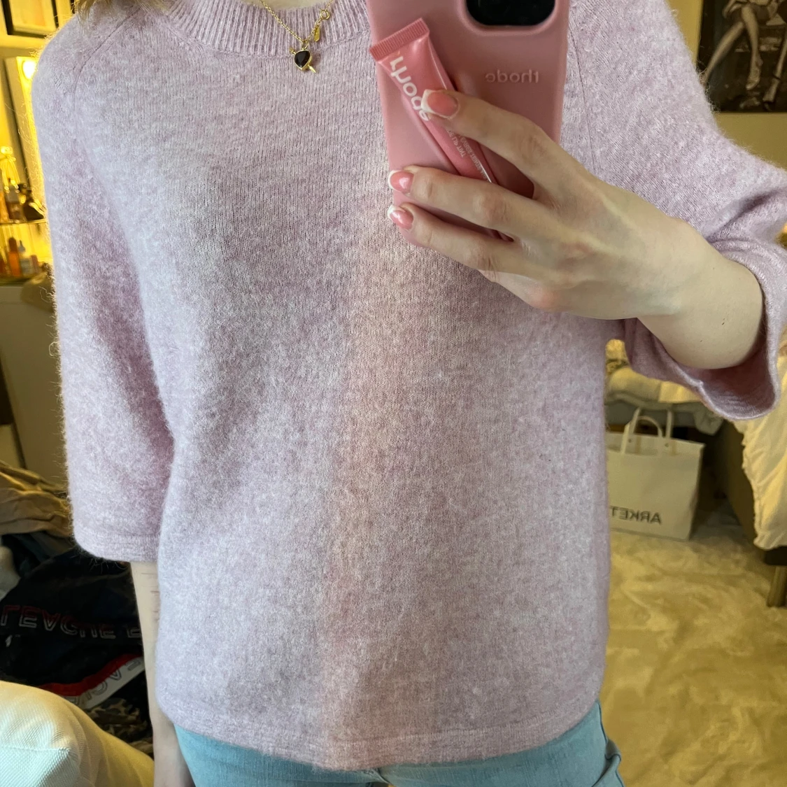 Populär stickad topp med korta ärmar i ull och alpacka! Fin gammelrosa färg🩷sparsamt använd , inga defekter!☺️Pris kan diskuteras