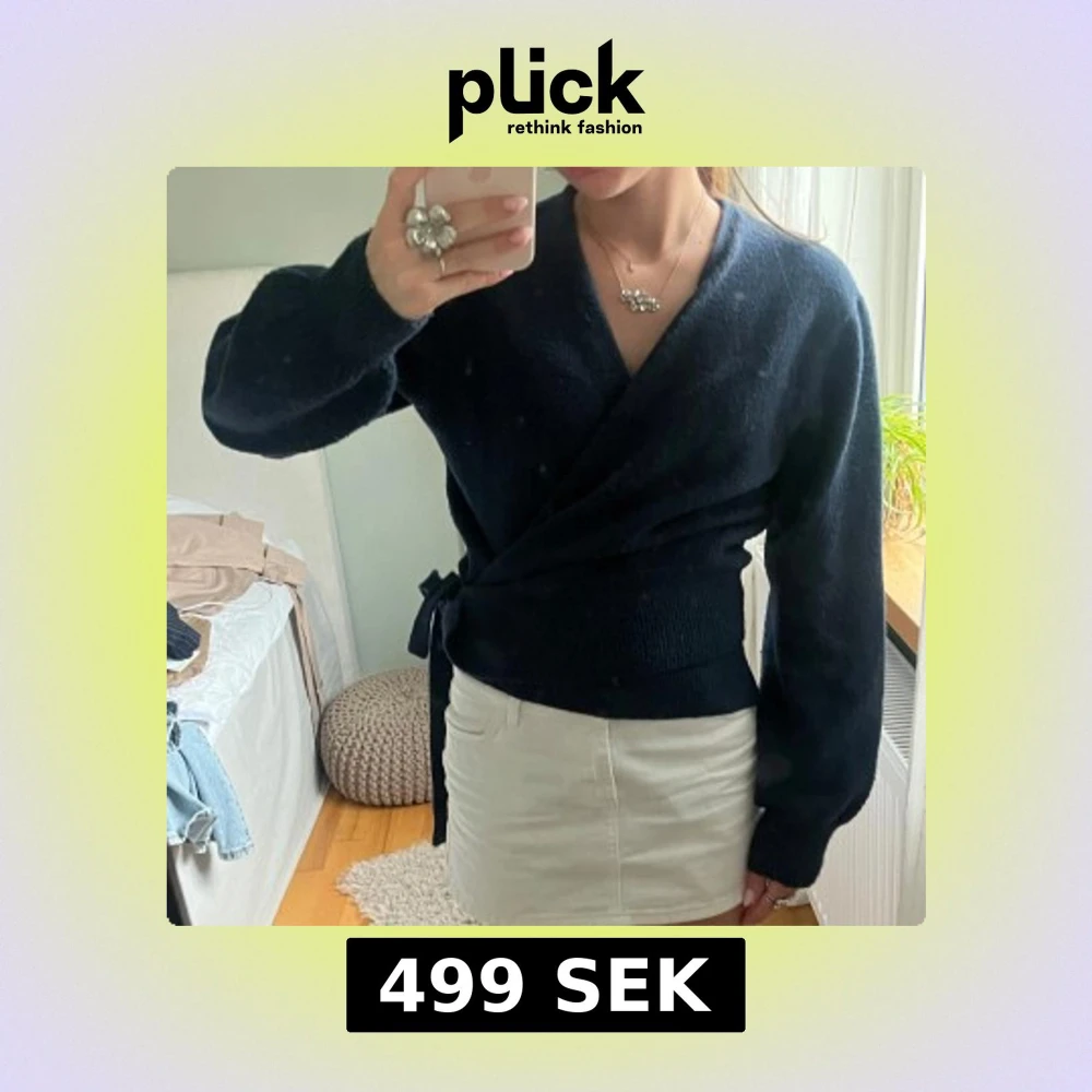 Snygg mörkblå omlottkofta med knyt i midjan och långärmade ärmar. Koftan är stickad och har en djup v-ringning. Köpt ifrån & Other Stories och är i mycket bra skick!💞