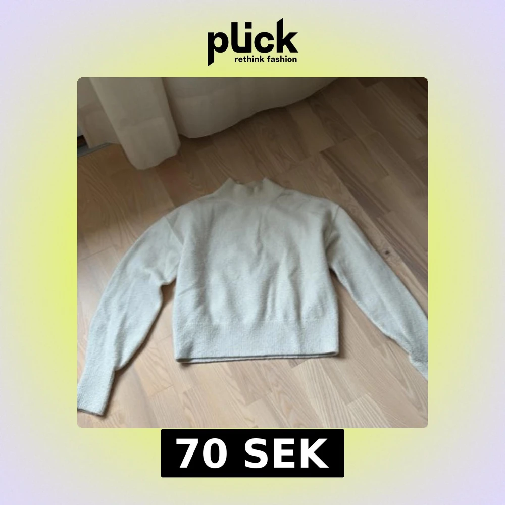 Vit stickad tröja från &other stories med en liten polokrage och mudd i ärmarna och nedre kanten