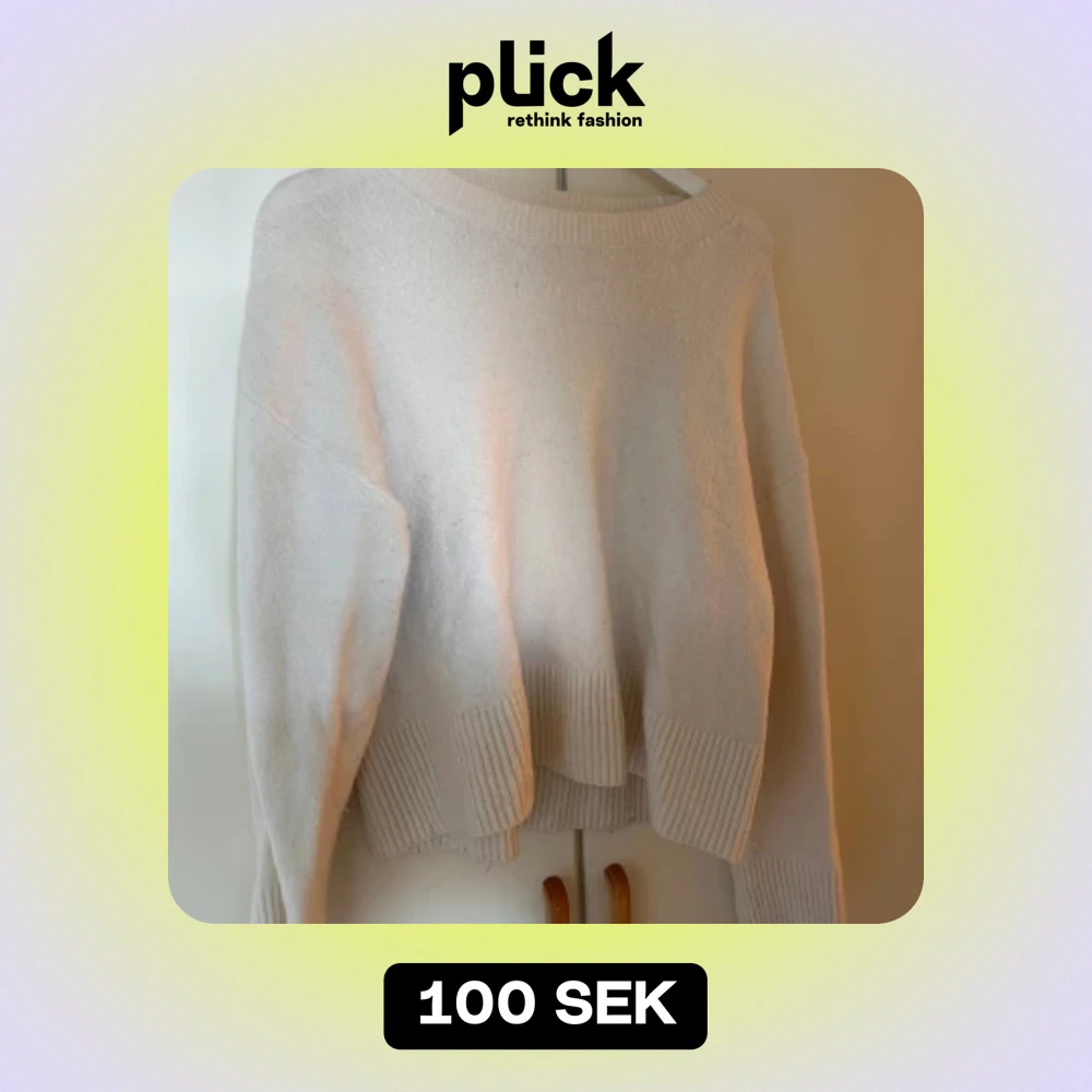 Säljer denna vita stickade tröja, lite nopprig men går nog att fixa.
