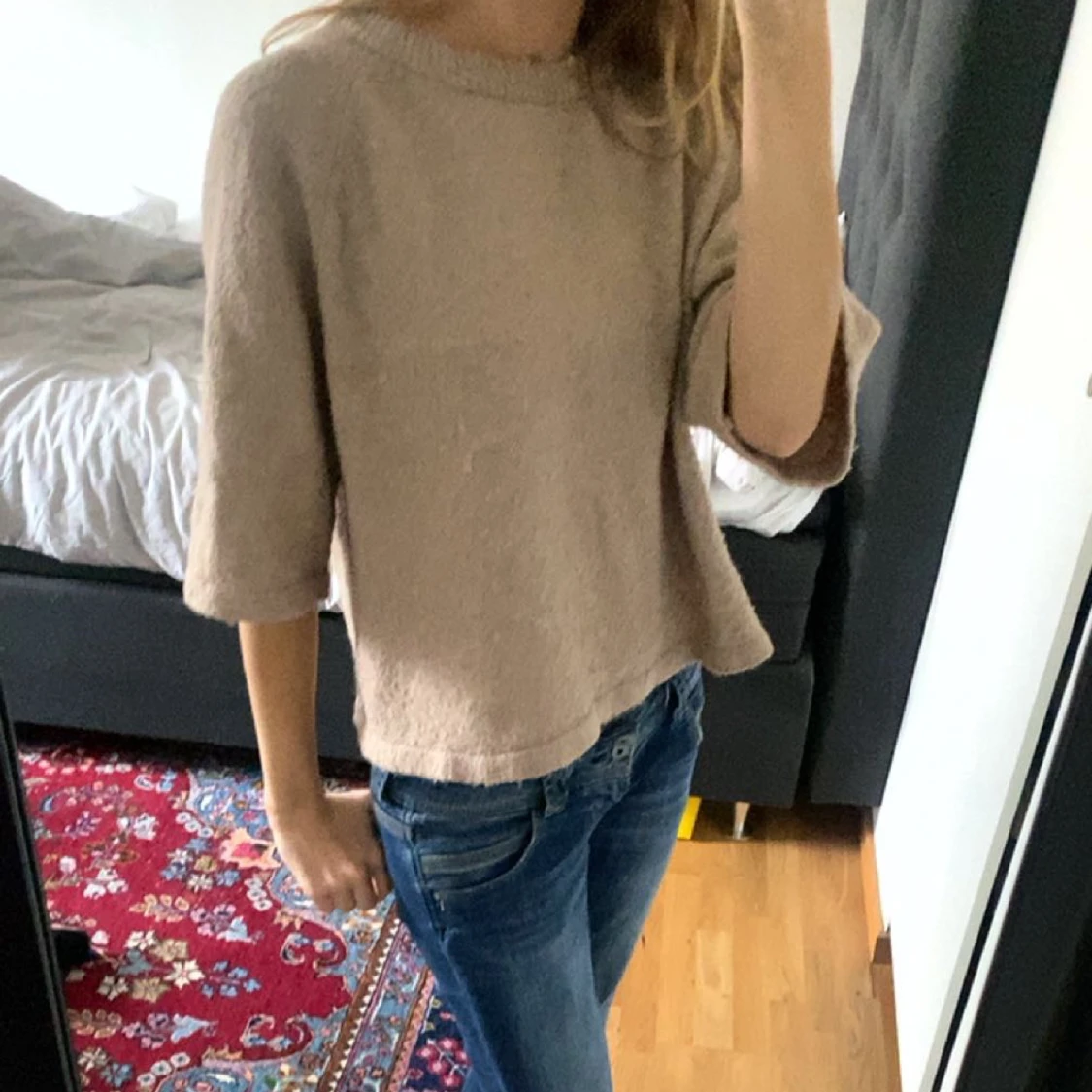 Säljer denna jätte snygga stickade trekvartsärmad tröja💕Kopia av Other stories tröjan💕 Köpt här på Plick, nopprig men ändå bra skick💕Storlek L men väldigt liten i storleken så passar mig som är storlek S💕