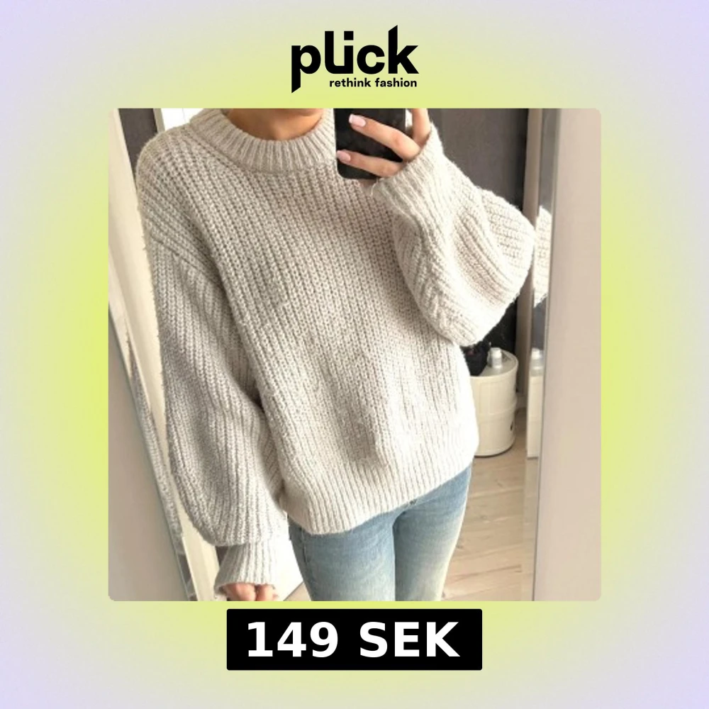 Mysig oversized beige stickad tröja med ribbad struktur! Bra skick förutom nopprorna som syns på bilderna!