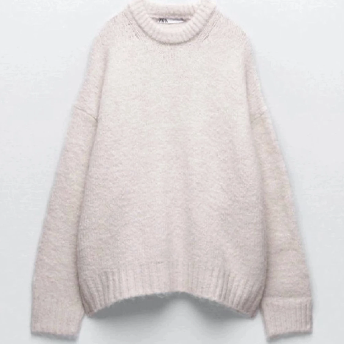 En jättefin ljusrosa stickad tröja från Zara i en oversized modell💕Går inte att köpa på hemsidan längre och säljer då den inte kommer till användning🤍