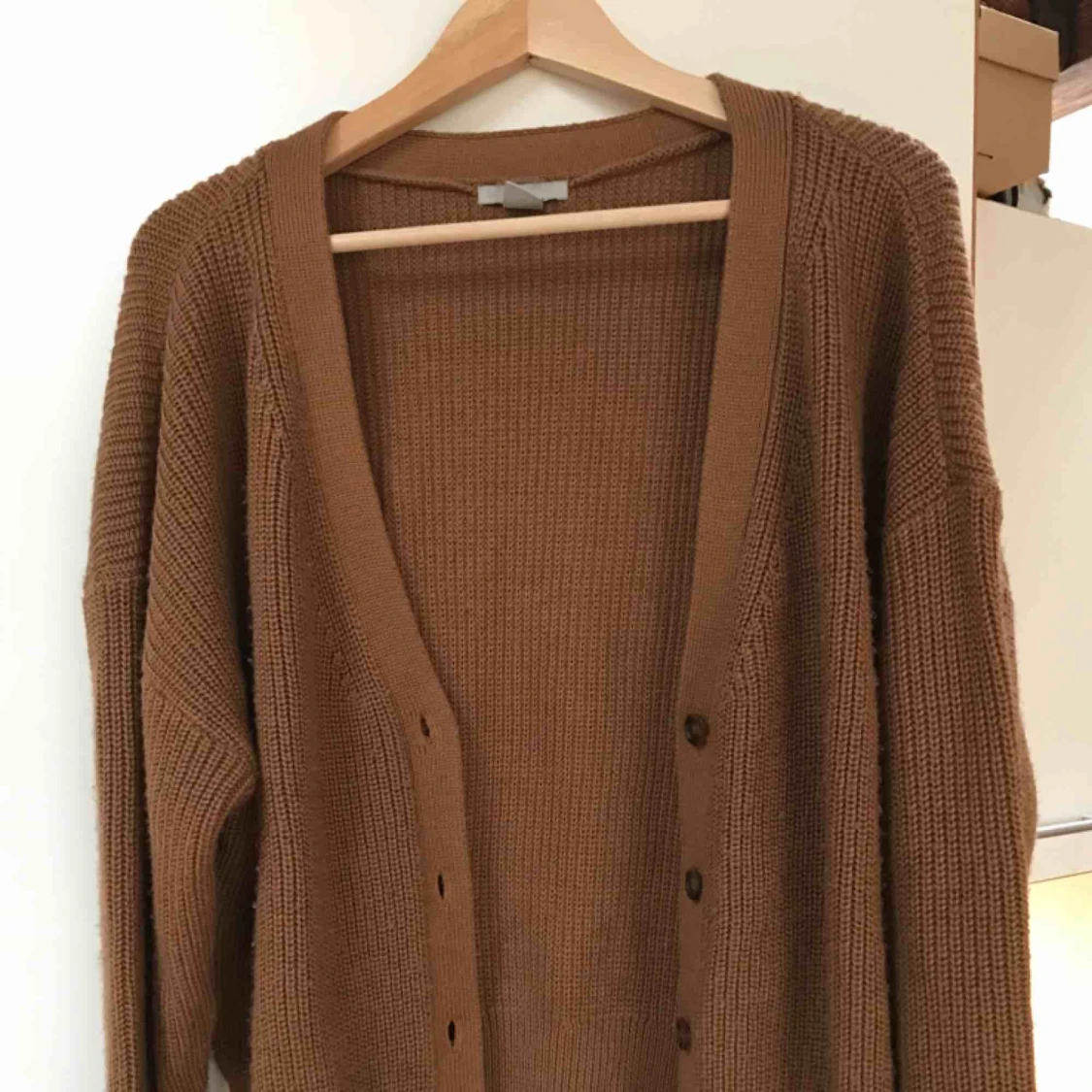 Stickad mysig ljusbrun kofta från HM, köpt förra vintern sparsamt använd. Något oversized. Frakt tillkommer