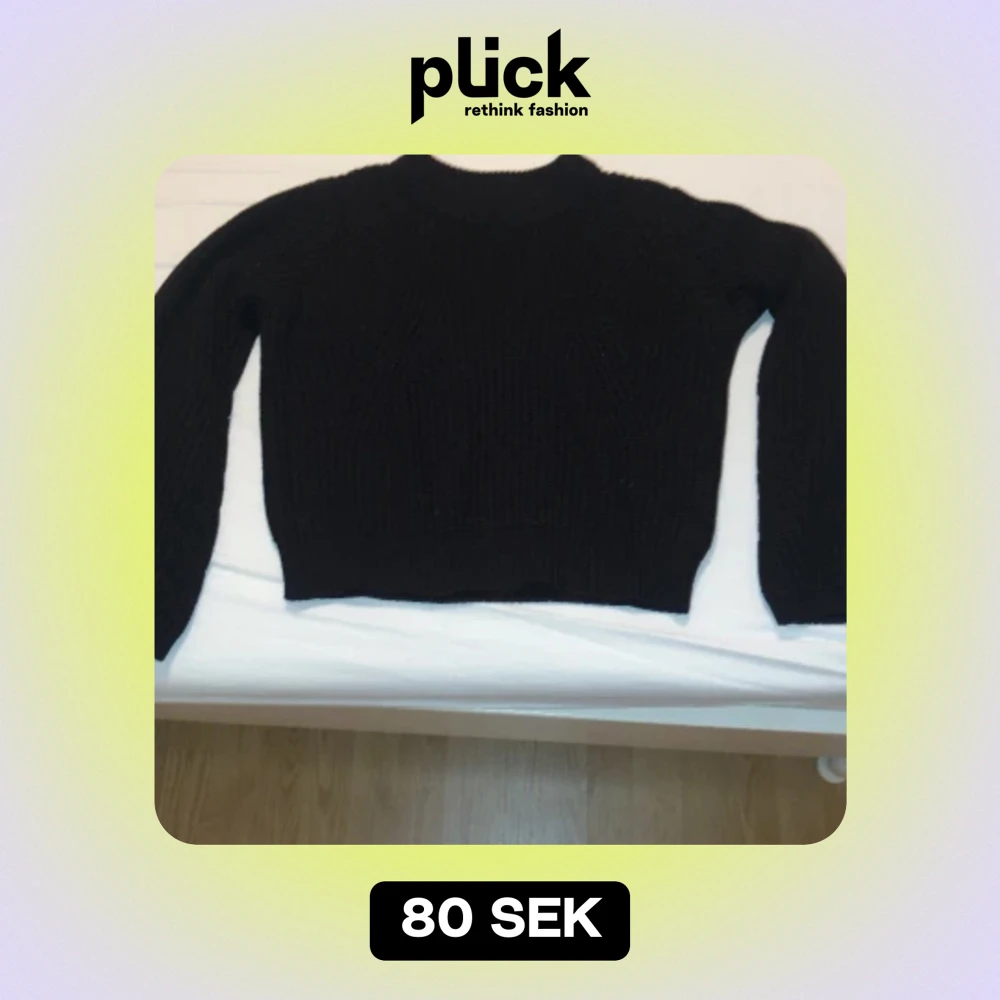 En svart stickad tröja i storlek 146/152 mem passar även 160.